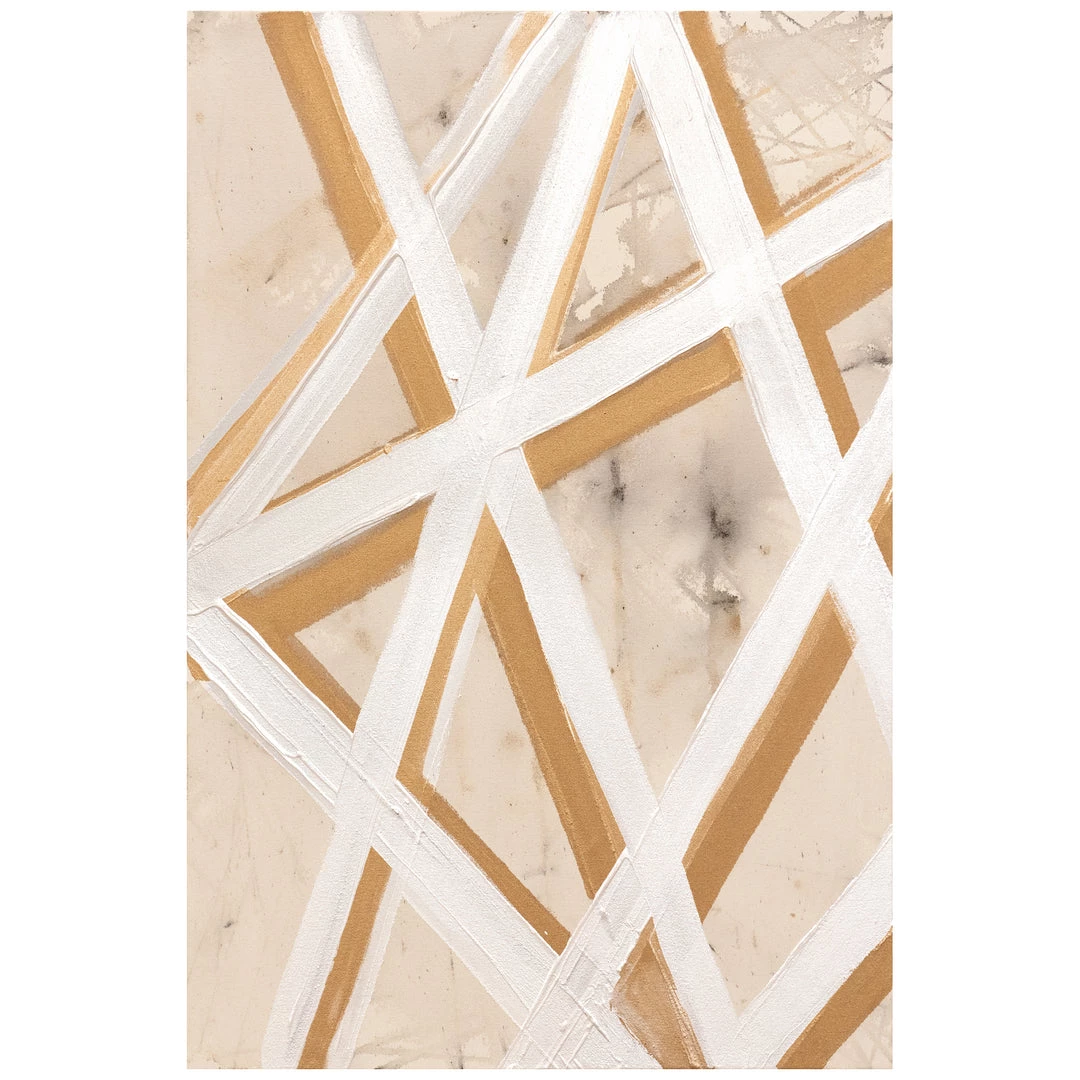 “Gold Paths” triptych by Danielle Davis is 100% hand painted on natural canvas by in-house artists. The gallery-wrapped artwork is hand stretched over 1.5″ stretcher bar with your choice of optional frame finishes.