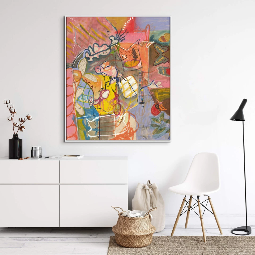 “Hey, Ho” abstract artwork by Kelly O’Neal is finished with an epoxy resin multi-step process rendering a durable and protective polish glass finish. This gallery-wrapped giclee is hand stretched over 1.5″ stretcher bar with your choice of optional frame finishes.