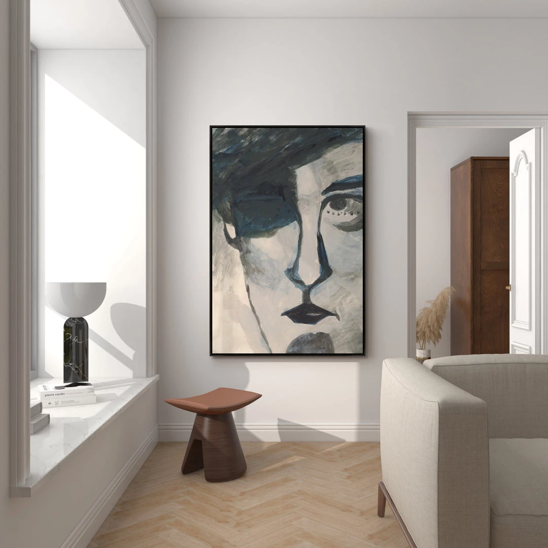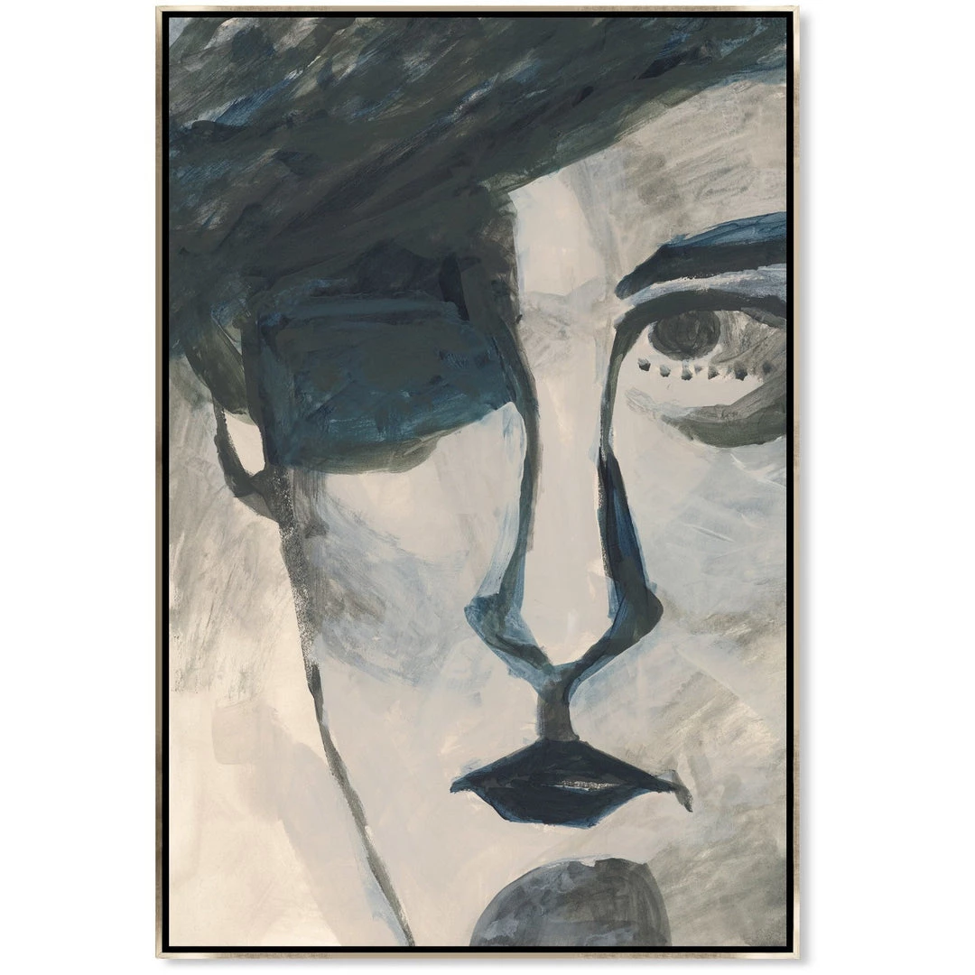 “In the Cabinet of Cal” abstract portrait artwork by Marcel Ovbleur is printed on linen and hand embellished for and an authentic look with natural texture. This gallery-wrapped giclee is hand stretched over 1.5″ stretcher bar with your choice of optional frame finishes.