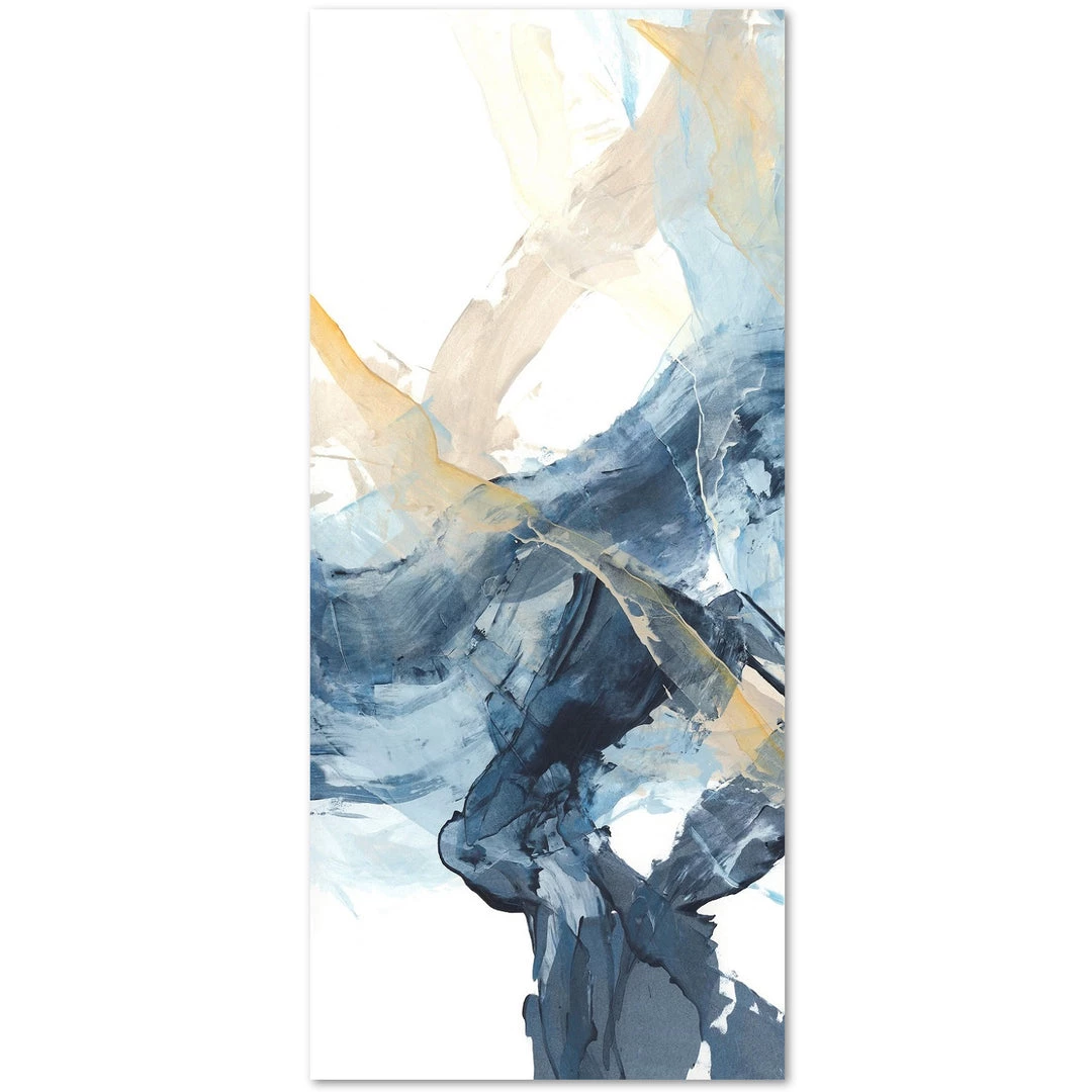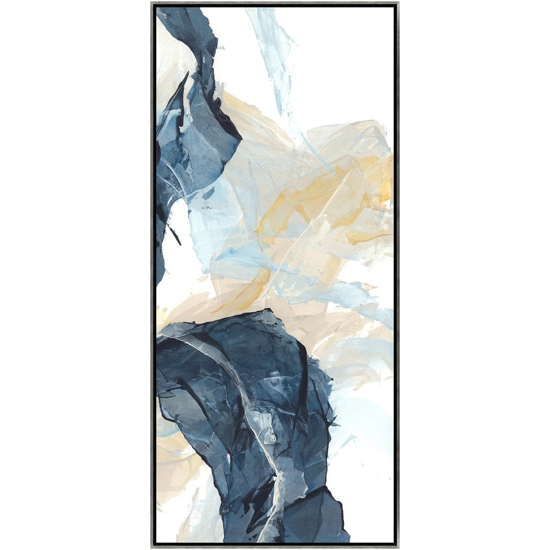 “Prevailing Movement” abstract series artwork in shades of blue by Richard Ryder is printed on canvas with strokes of the original image applied with an artist brush to enhance the authentic feel of the piece. This gallery-wrapped giclee is hand stretched over 1.5″ stretcher bar with your choice of optional frame finishes.