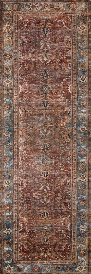 LOLOI ANJALI VINTAGE PRINT FLAT RUG: BRICK, BLUE