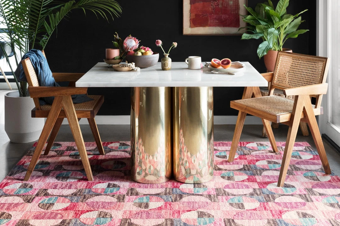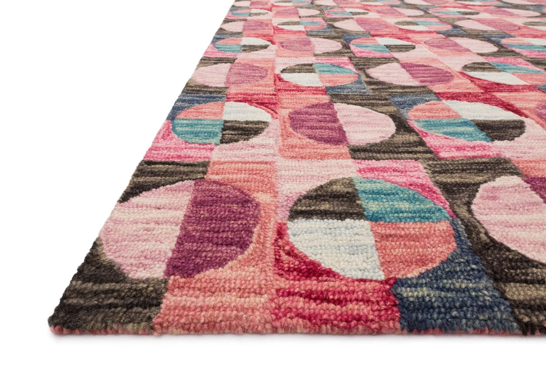 Hooked of 100% wool pile by artisans in India, this modern eclectic rug collection features graphic patterns and fun color combinations perfect for creating an eye-catching focal point.