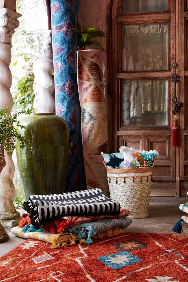 Mid-century modern designs meet bohemian influences in the Kahelo reversible rug from Justina Blakeney x Loloi. Each piece is hand-woven of 100% polyester, offering long-lasting durability for even the most high-traffic rooms in your home.