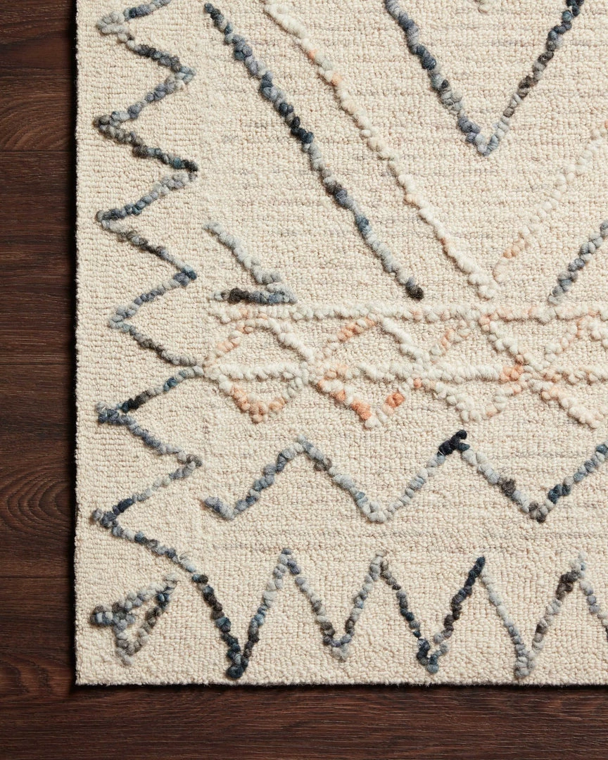 LOLOI LEELA 02 HOOKED WOOL RUG: OATMEAL, DENIM
