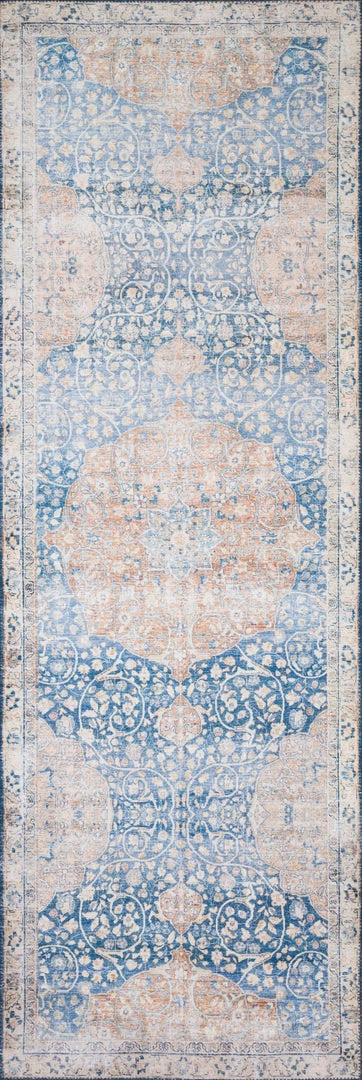 LOLOI NIKHIL VINTAGE PRINT FLAT RUG: BLUE, PEACH