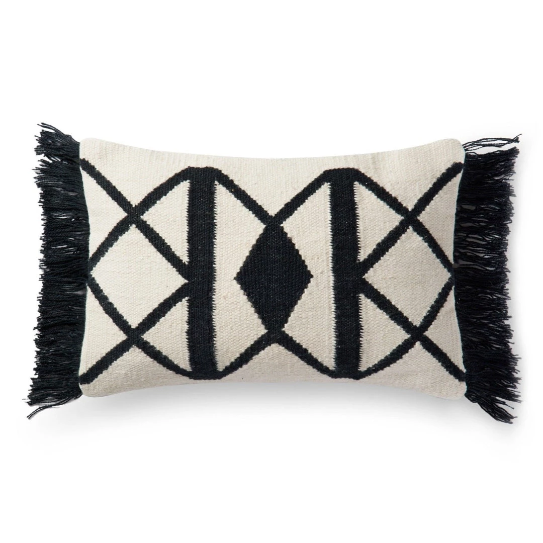 Toss in some texture, indoors or out. Made entirely from recycled polyester PET Yarn, Theses outdoor-friendly throw pillows features a high-contrast graphic pattern and fringe for flair.