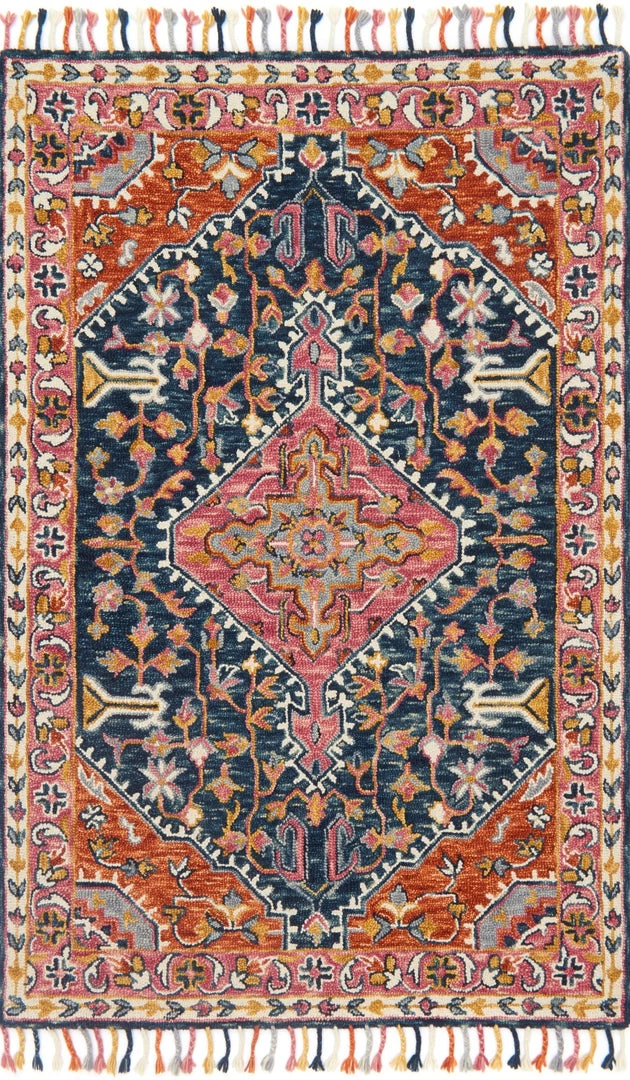 LOLOI ZHARAH 01 HOOKED WOOL RUG: NAVY MULTI