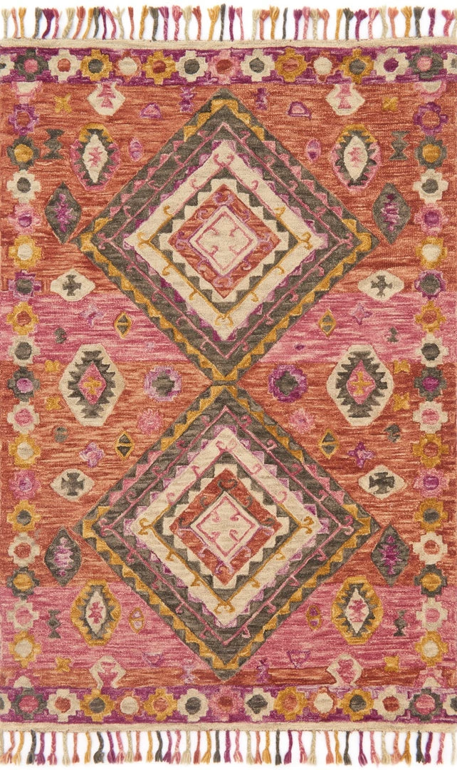 Hooked by skilled artisans of 100% wool, this collection boasts bold colors with impossible-to-miss patterns and tassel detail for a decidedly statement-making series of rugs.