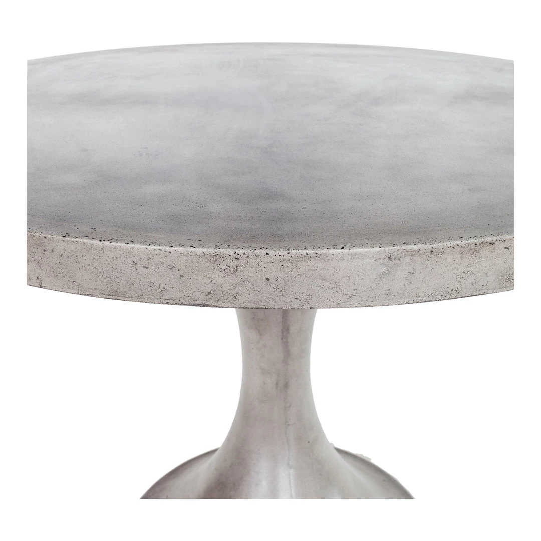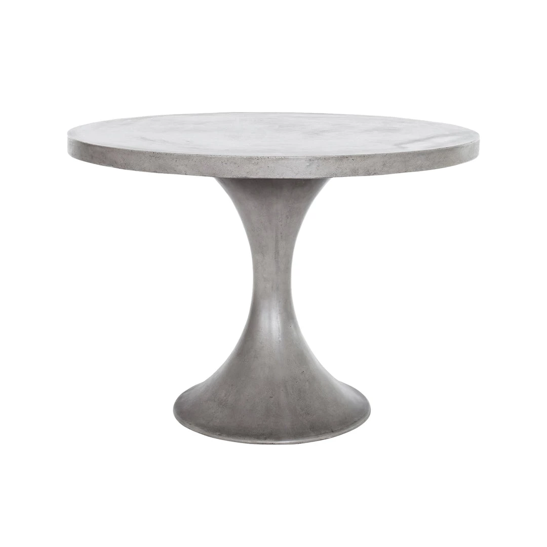 Classic tulip shaping in grey-finished concrete makes for a modern bistro table.