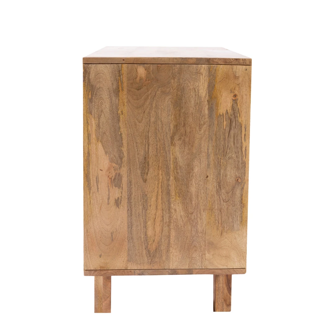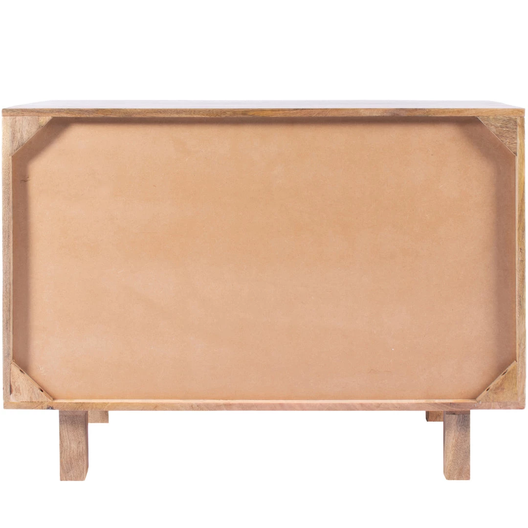 A stylish combination of solid mango wood and woven cane give the Ashton Chest a fresh contemporary style. Three spacious, black-framed drawers help maximize storage and metal drawer glides allow for easy opening and closing.