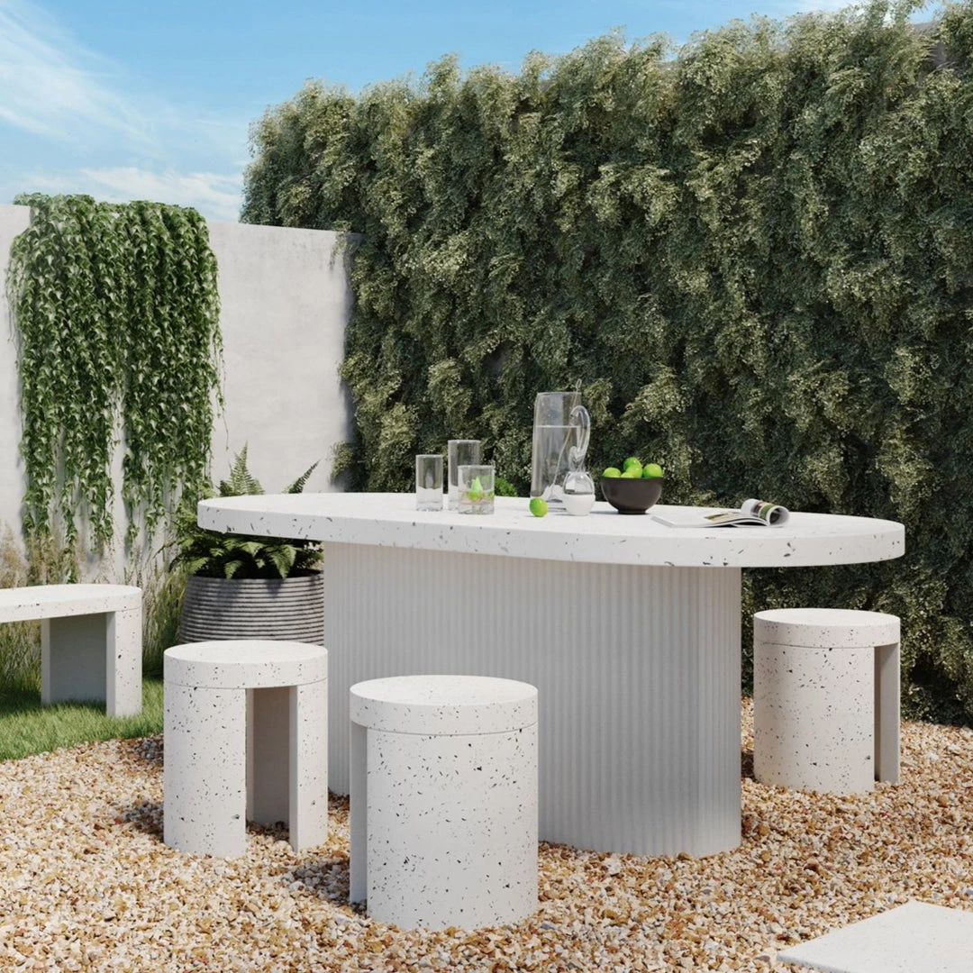 + DECO WHITE TERRAZZO OUTDOOR DINING BENCH