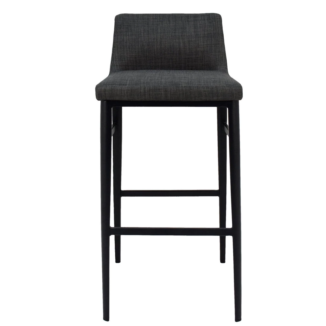 A low-backed stool with a stylish and compact design. The charcoal-grey upholstery will add warmth and texture to your dining area, as the overall style sets a sophisticated tone.