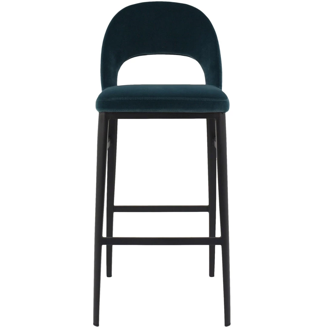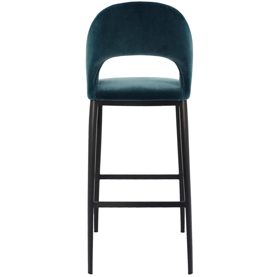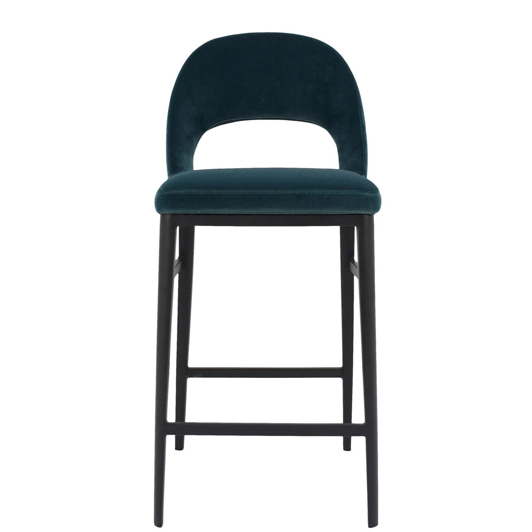 A sleek addition to any kitchen or bar. The Ellery Stools add subtle sophistication with a curved silhouette, cut out back, and plush teal velvet upholstery rounding out this comfortable mid-modern design.