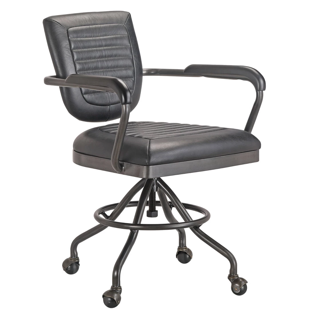 The Foster Desk chair is the ultimate combination of comfort and style. Its vintage look is achieved with a top grain leather upholstery that’s supported by a plywood frame and detailed with steel hardware. Perfect for getting through a tough work day, or getting your creative juices flowing