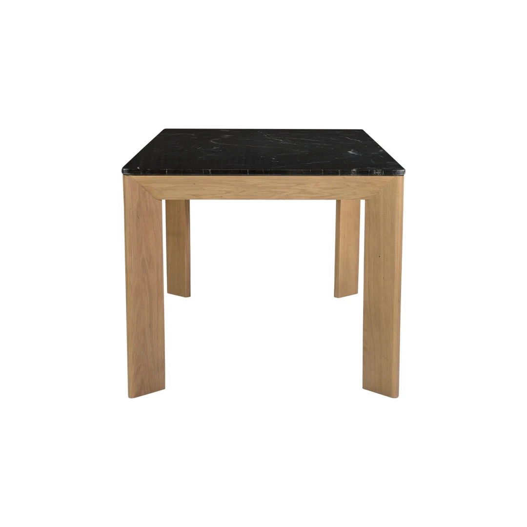The Denmark Dining Table embodies an organic modern Scandinavian design aesthetic. Denmark’s crisp profile combines the soft warmth of solid oak with a smooth marble tabletop to bring a sharp contemporary look to dining style.