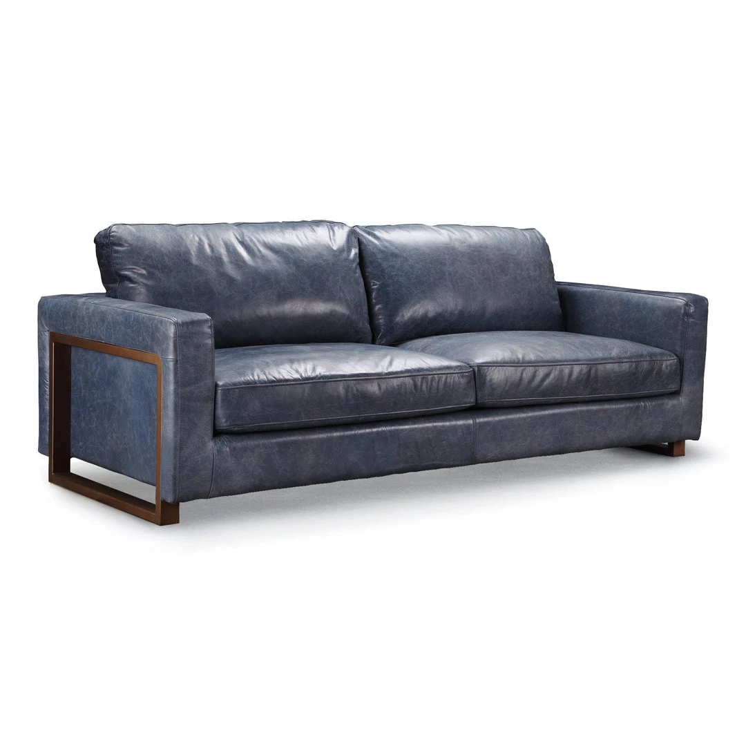 Name a better, long-lasting pair than iron and leather. The Nikoly Sofa boasts both in a sleek, contemporary design. Natural wrinkles and color variation are all part of its unique look.