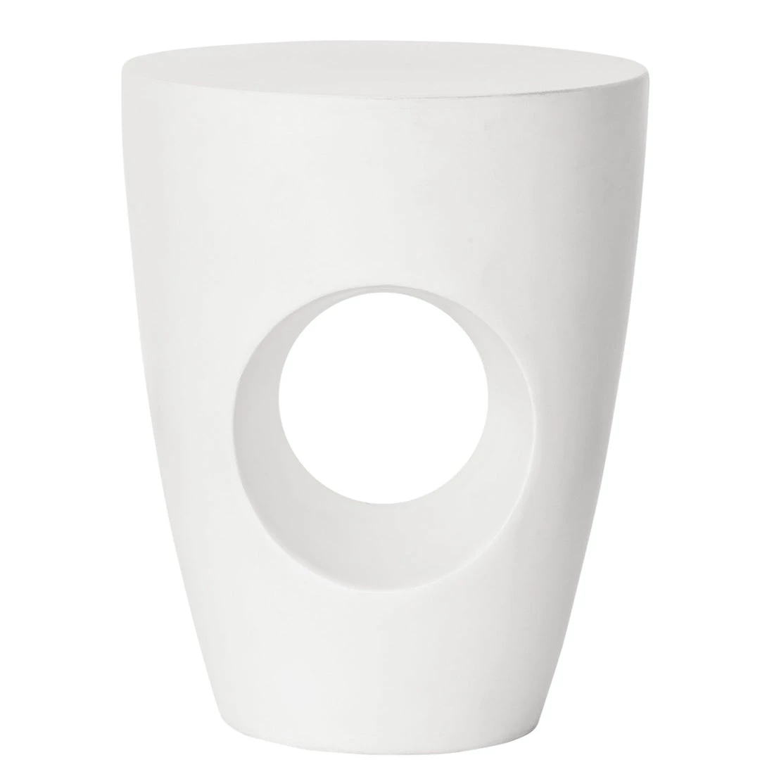 The smooth surface of the concrete is gracefully combined with a geometric circle; this elemental piece pairs well with impact colors, plush velvet, and organic such as succulents for a Zen like vibe. Suitable for outdoor use this concrete stool uses granite stone powder, natural jute fibers, and Portland cement sealed to create a smooth surface with a solid finish.