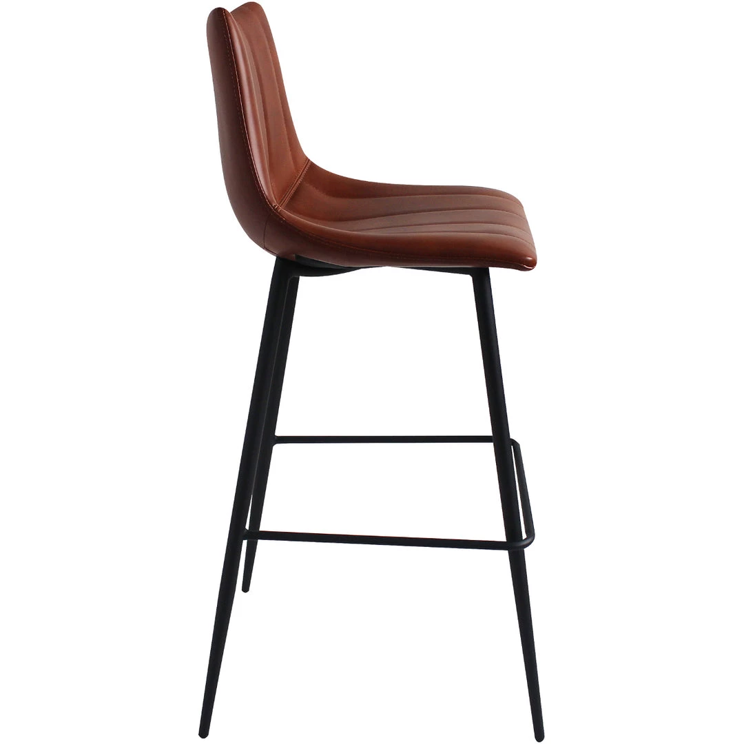 Our Glove Stools curve in both the seat and back for extra comfort and the PU leatherette upholstery is easy maintenance for even the wildest of parties– or families. Set on black powder-coated Midcentury legs.