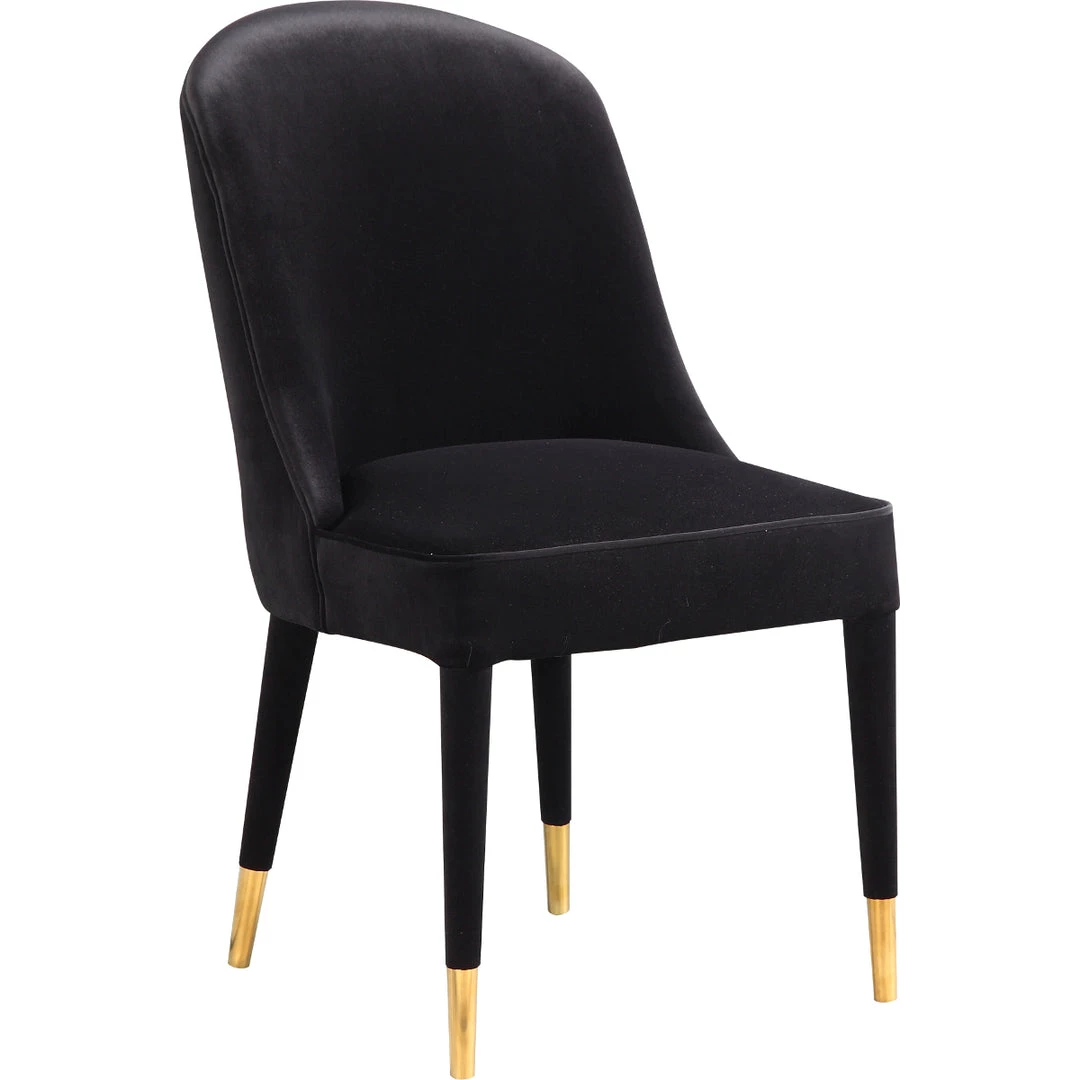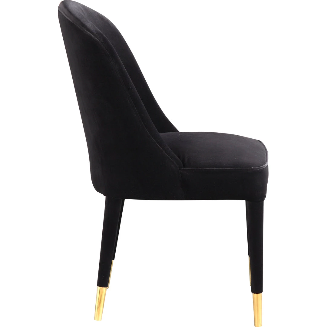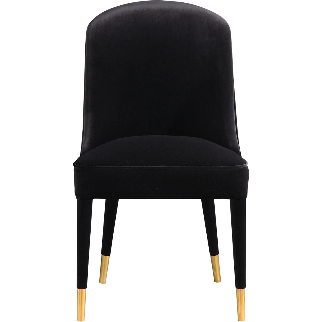 The height of fashion, the mid-century Italian-inspired Liberté High-Back Dining Chair features a towering rounded back, plush velvet, and angled upholstered legs with gold tips for sleek comfort. Use a pair as captain chairs or go all in with a full set to bring drama your dining room.