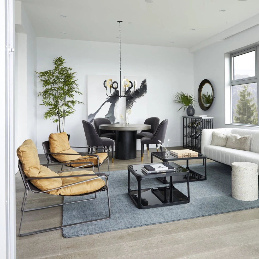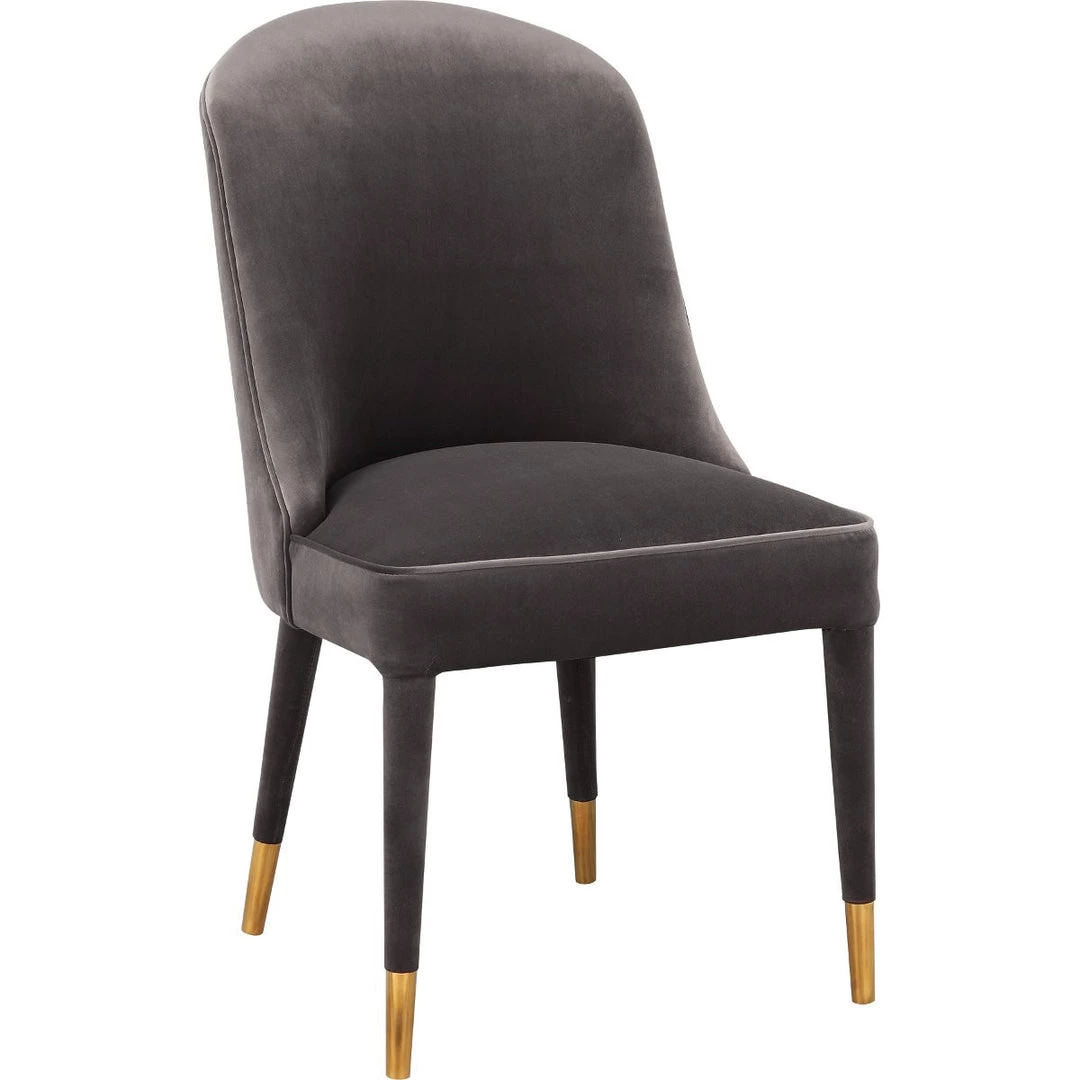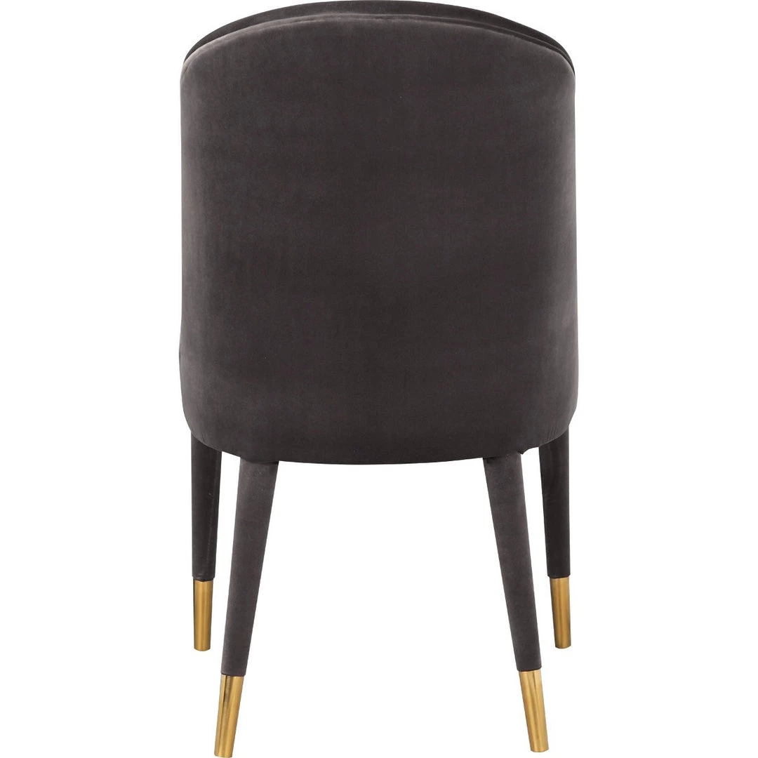 The height of fashion, the mid-century Italian-inspired Liberté High-Back Dining Chair features a towering rounded back, plush velvet, and angled upholstered legs with gold tips for sleek comfort. Use a pair as captain chairs or go all in with a full set to bring drama your dining room.