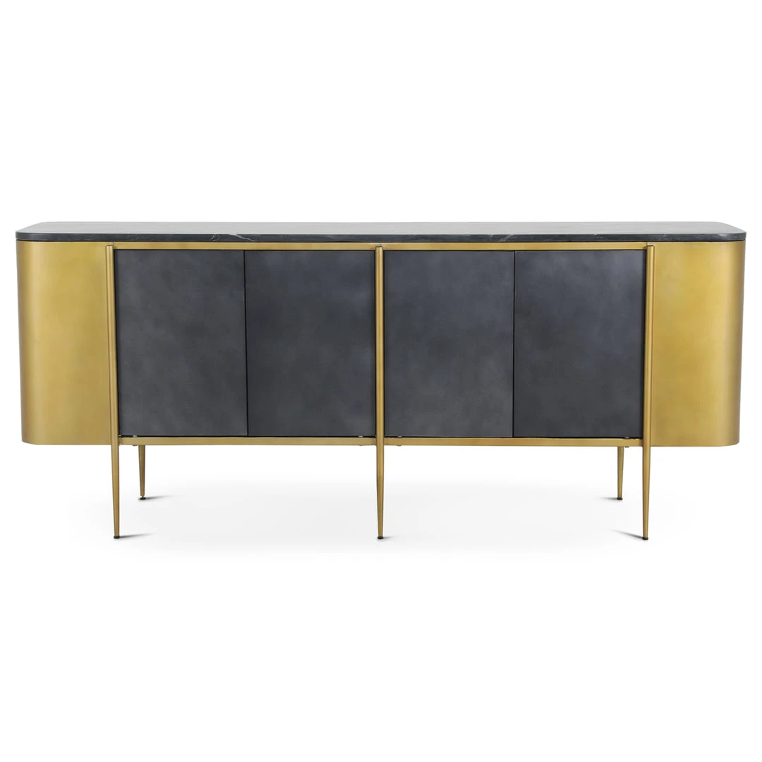 The Gatsby Sideboard provides statement-making storage in any room with it’s decadent Italian black marble top and brass finished iron composition. Gracious cabinet doors offer plenty of hidden storage.