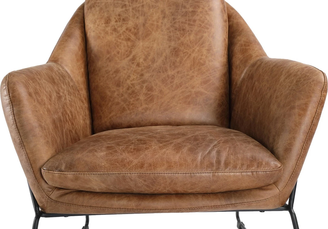 The Greer club chair is a beautiful modern design that will attract the eye with its sleek look. The cushions are made from top grain vintage leather set in a black iron frame.