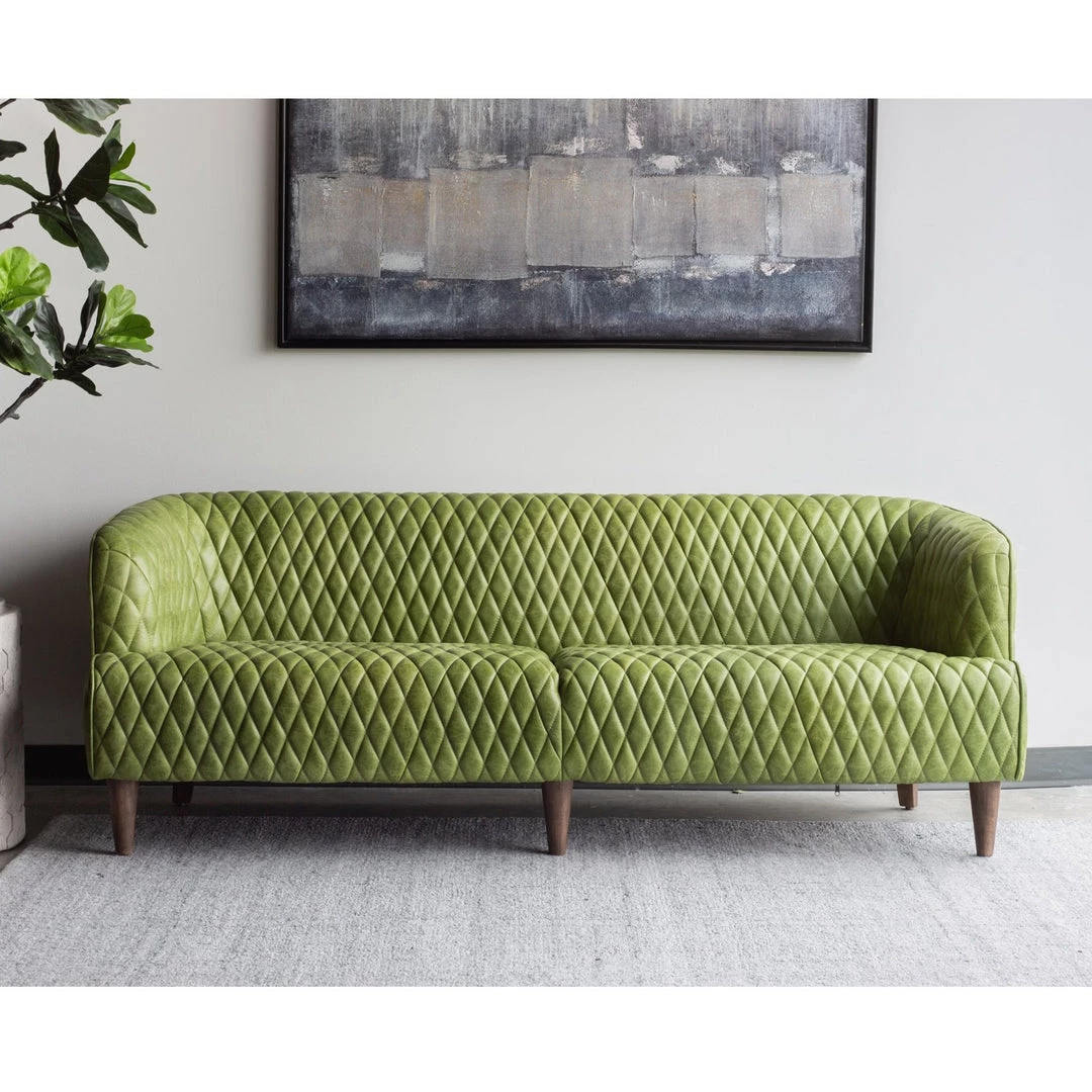 Rustic top-grain leather with a finely-tailored, diamond-tufted seat and back give the Magdelan a high-end, designer appeal.