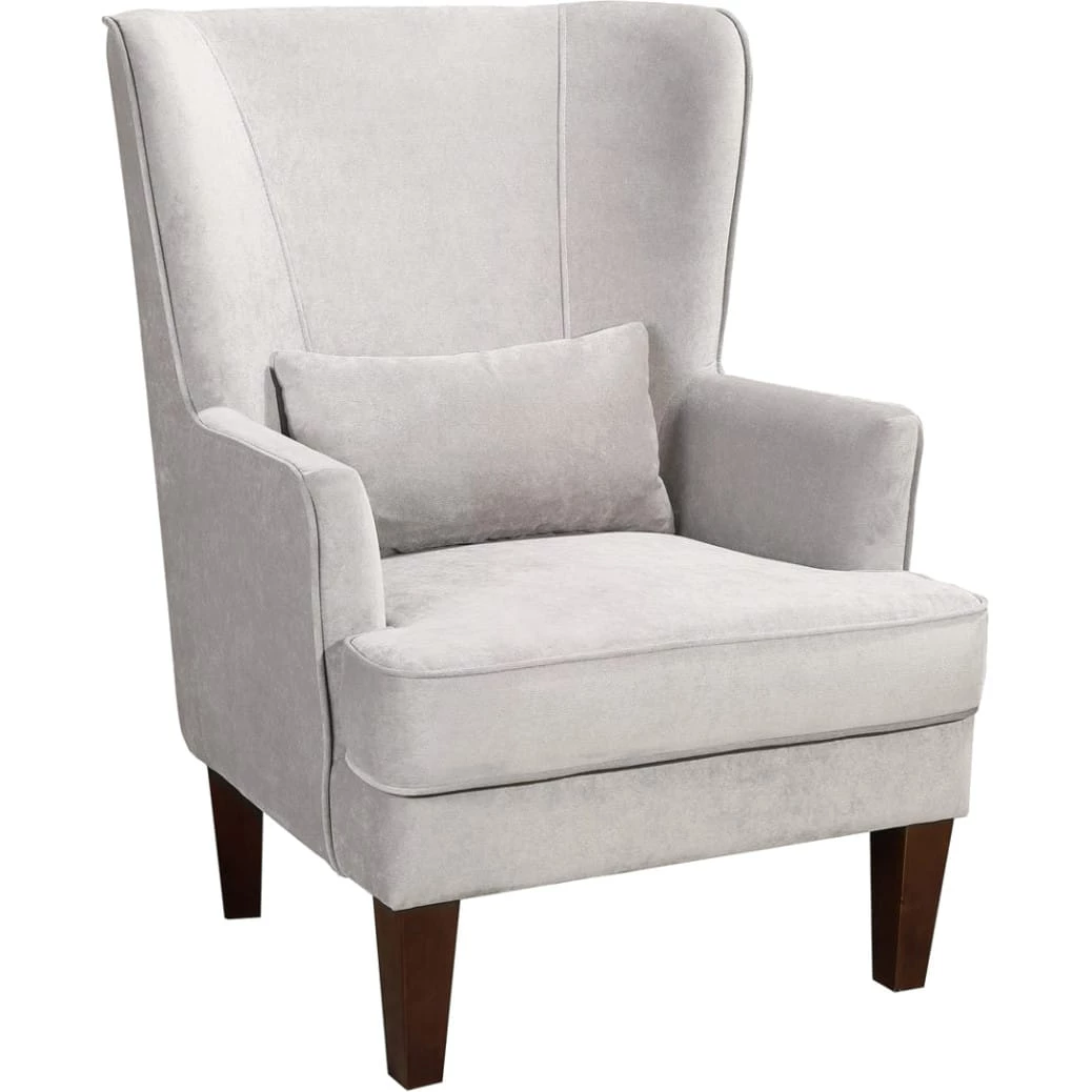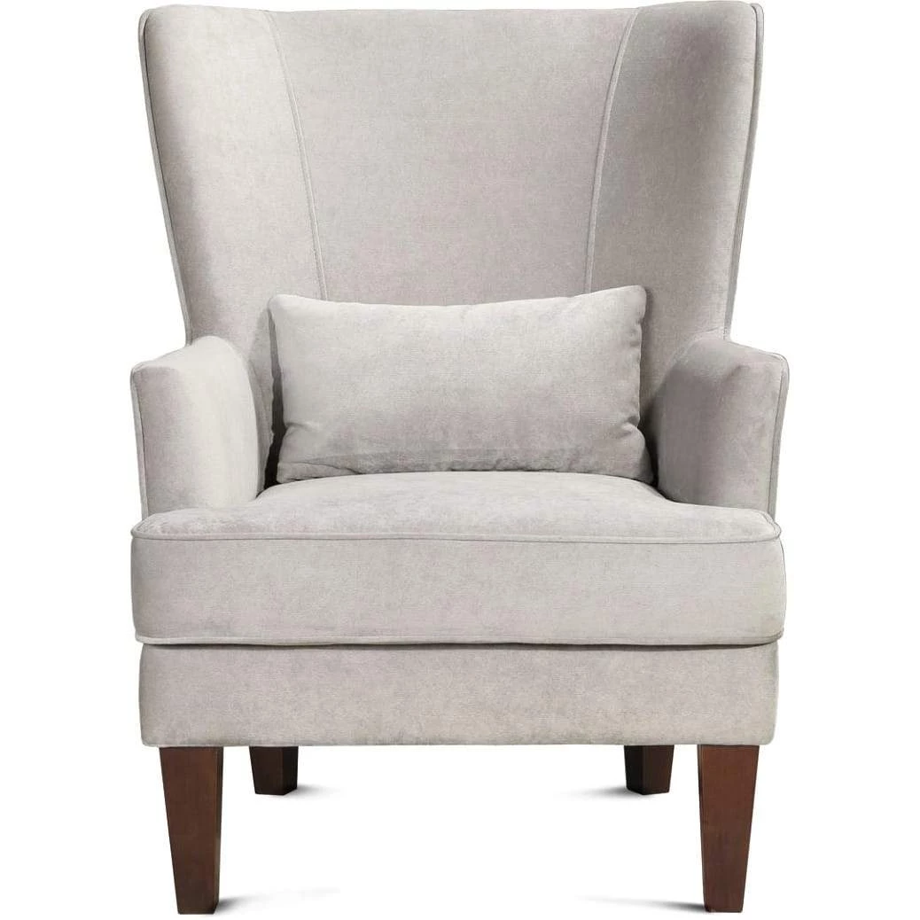 Classic arm-chair style with contemporary lines and a soft, grey upholstery. Perfect for cocktails or the book club.