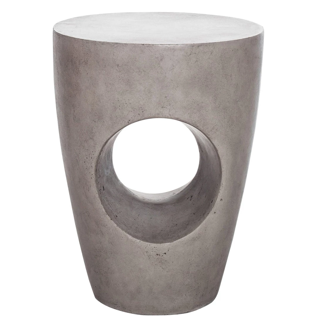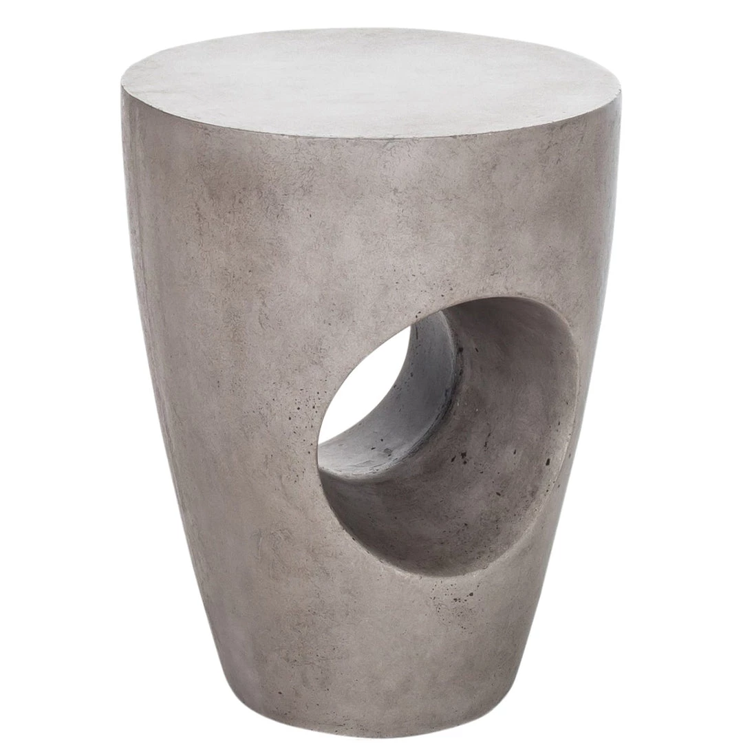 The smooth surface of the concrete is gracefully combined with a geometric circle; this elemental peice pairs well with impact colors, plush velvet, and organic such as succulents for a Zen like vibe. Suitable for outdoor use this concrete stool uses granite stone powder, natural jute fibers, and Portland cement sealed to create a smooth surface with a solid finish.