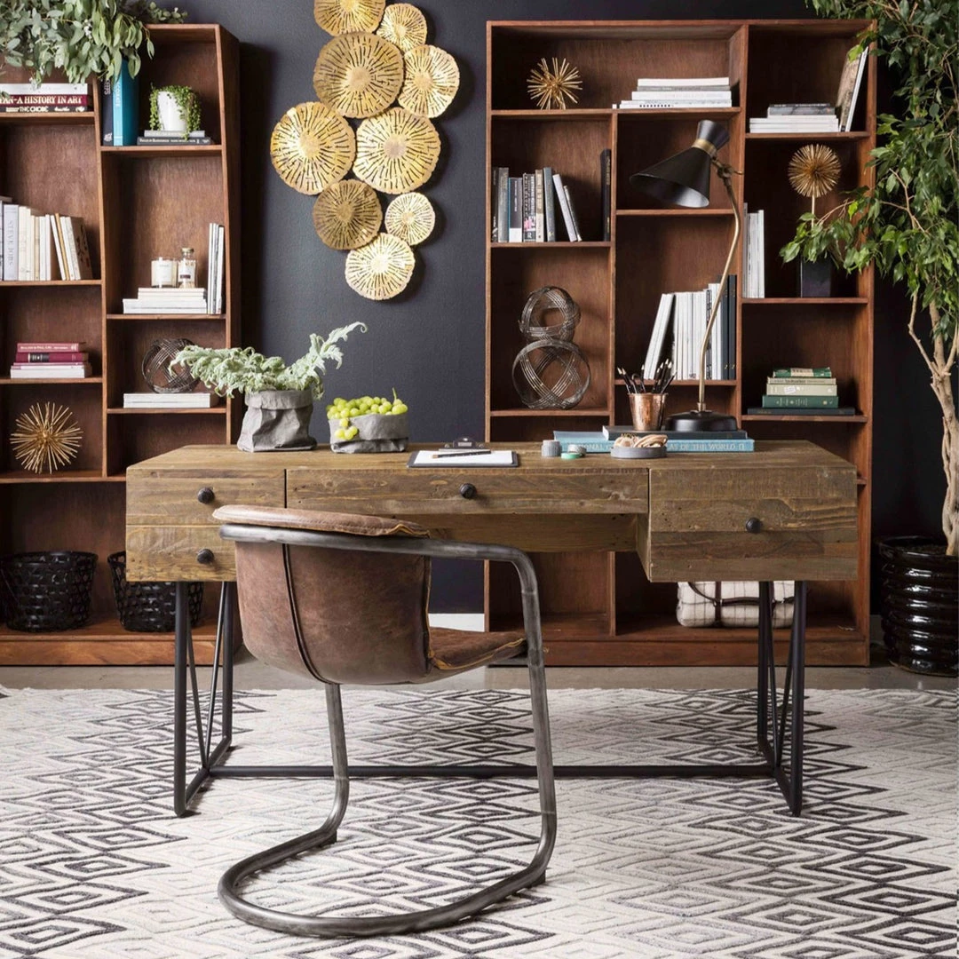 Ideal for creating a rustic workspace, the Orchard Desk features four drawers and a large shelf for books and decor. Made with solid reclaimed pine and steel, this desk brings an earthy industrial feel to your office.