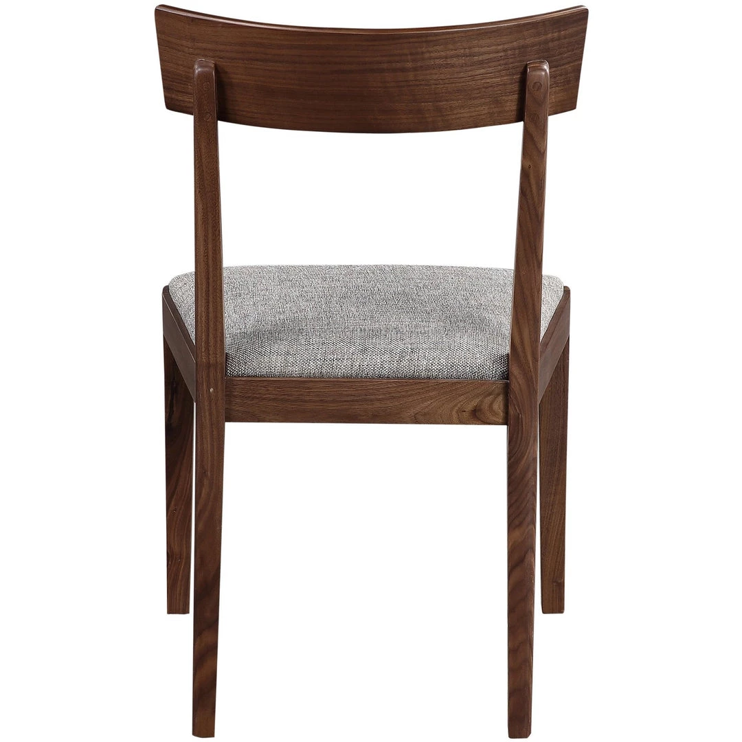 Streamlined with all the mid-century modern vibes you can settle right into, the Pima side chair uses an open backrest for sleek, minimalist form. With its rich walnut frame, curved back leg, and tonal fabric, the Pima chair is an ideal addition to elevate your table-scape design.