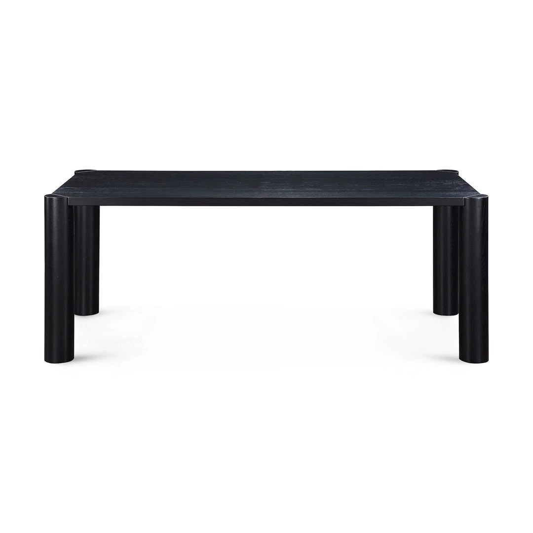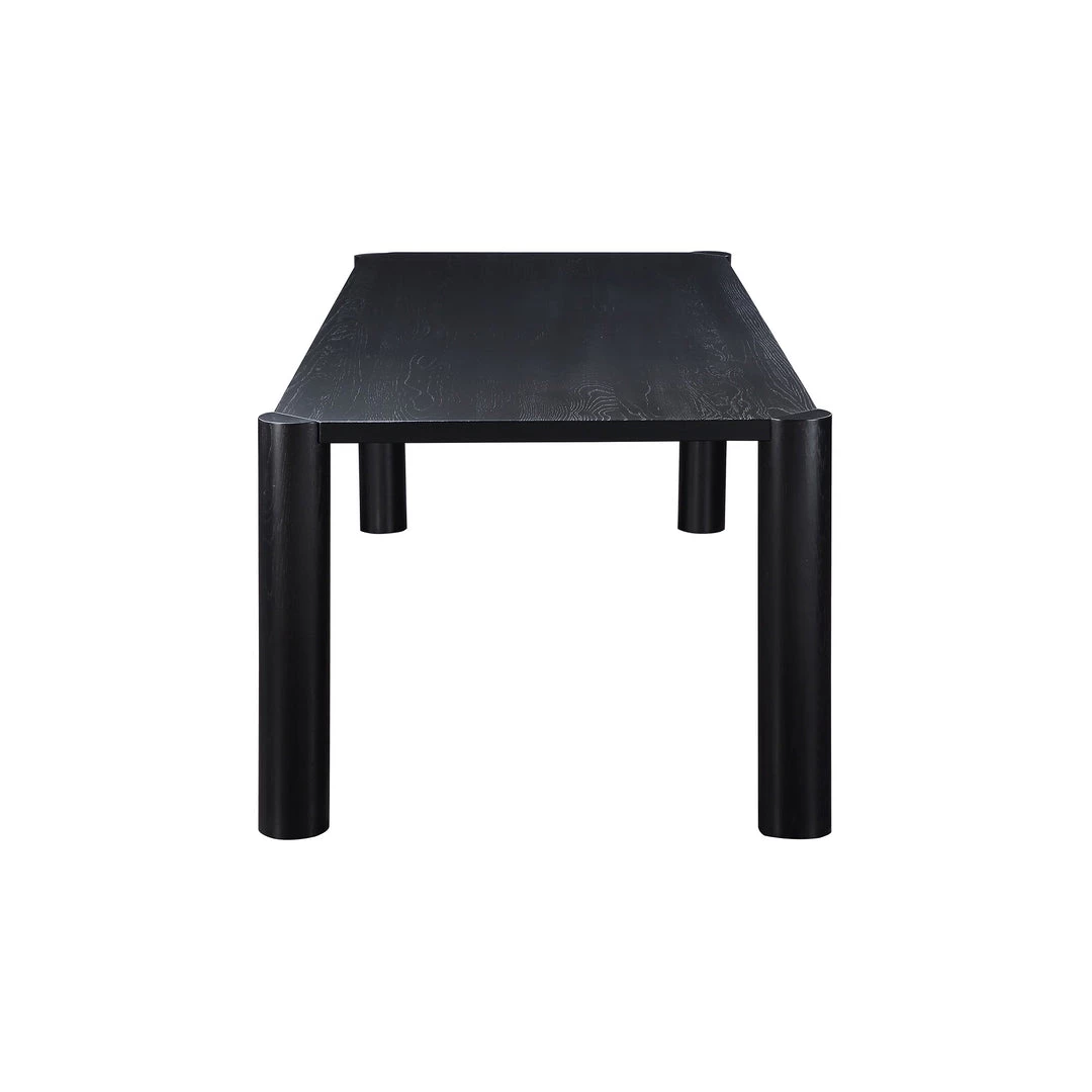 The Post Dining Table embodies an organic modern Scandinavian design aesthetic. A sophisticated beauty in a blackened oak semi-gloss finish with rounded posts on each of its four corners, this dining table shows off the woods beautiful grain patterning and shades.