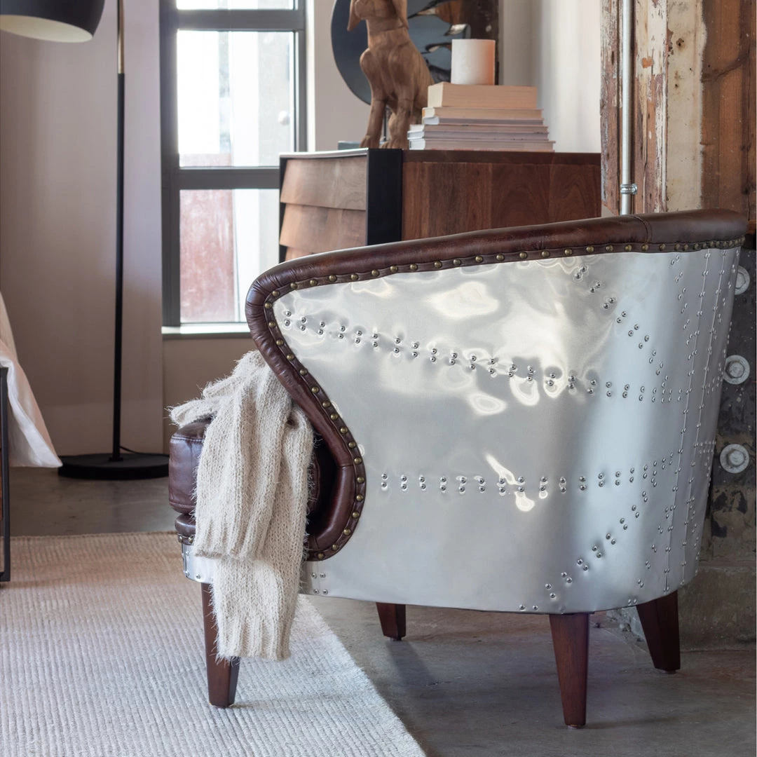 Made of: Top Grain Leather, Hardwood & Plywood Frame, Aluminum