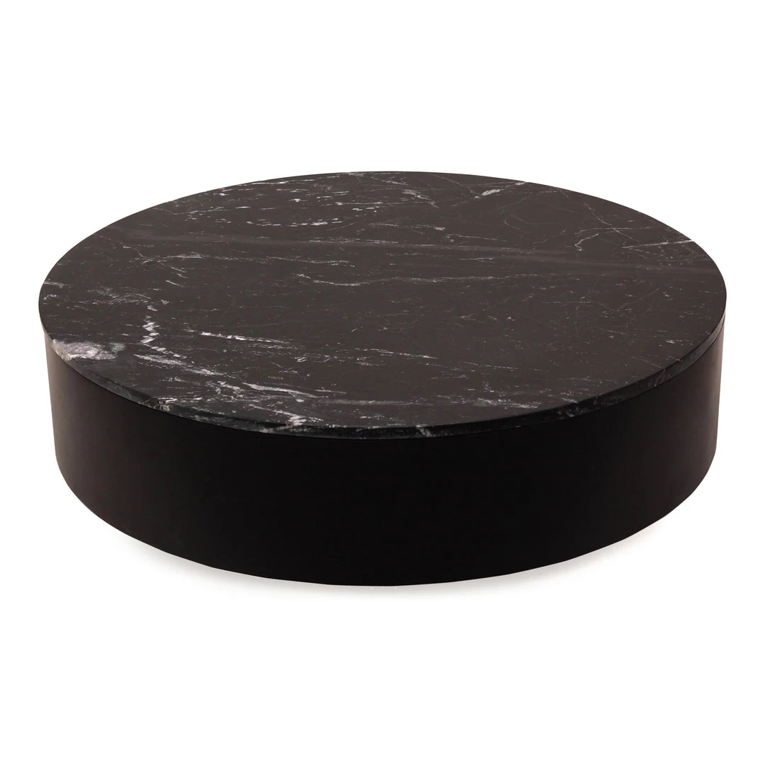 Iconic and elemental, the Ritual coffee table keeps a low profile in a simple round design while making a timeless statement in stone with an effortless modern twist. Like stars in a night sky, the solid black marble tabletop is flecked with highlights of gold, bringing a sense of play to this dusky affair.