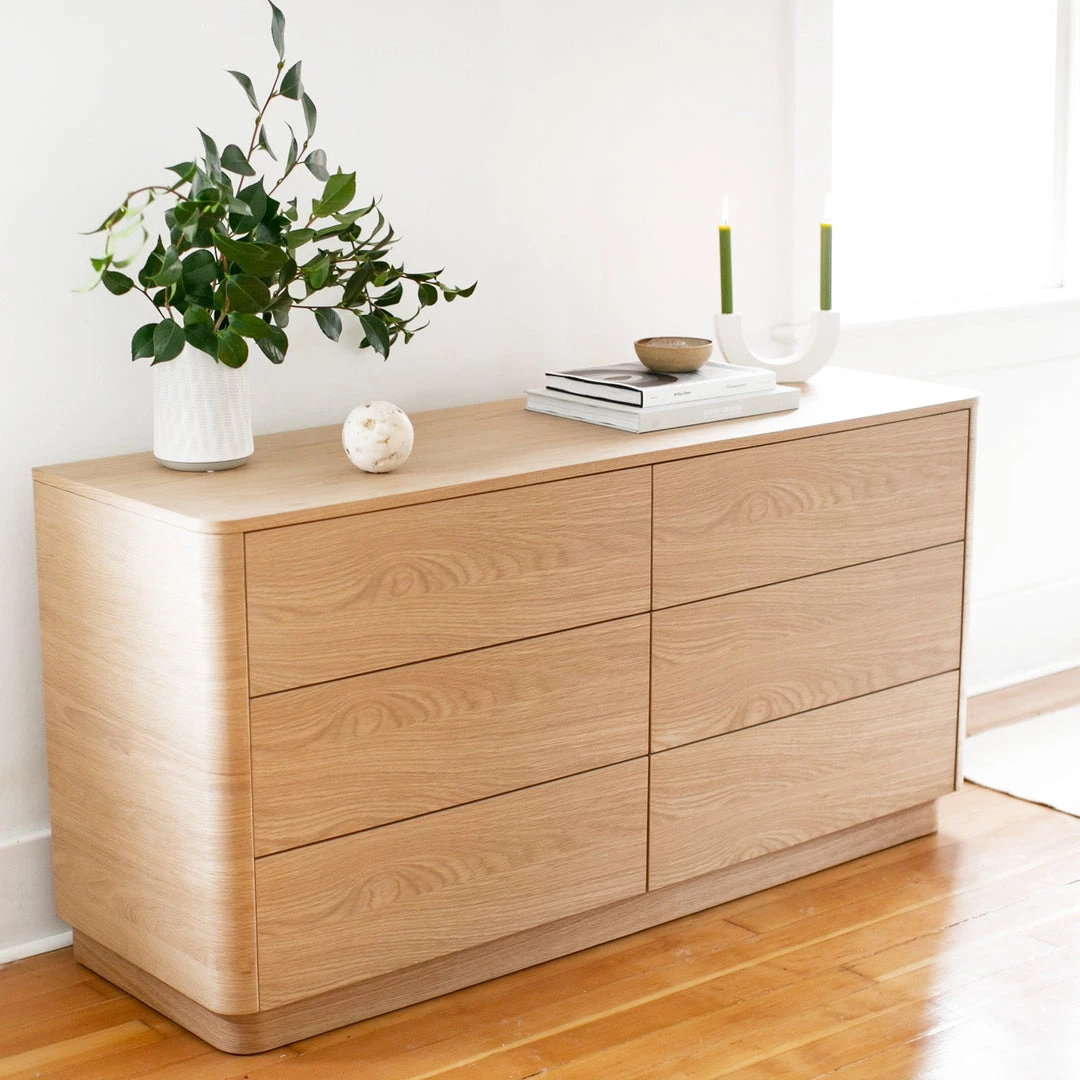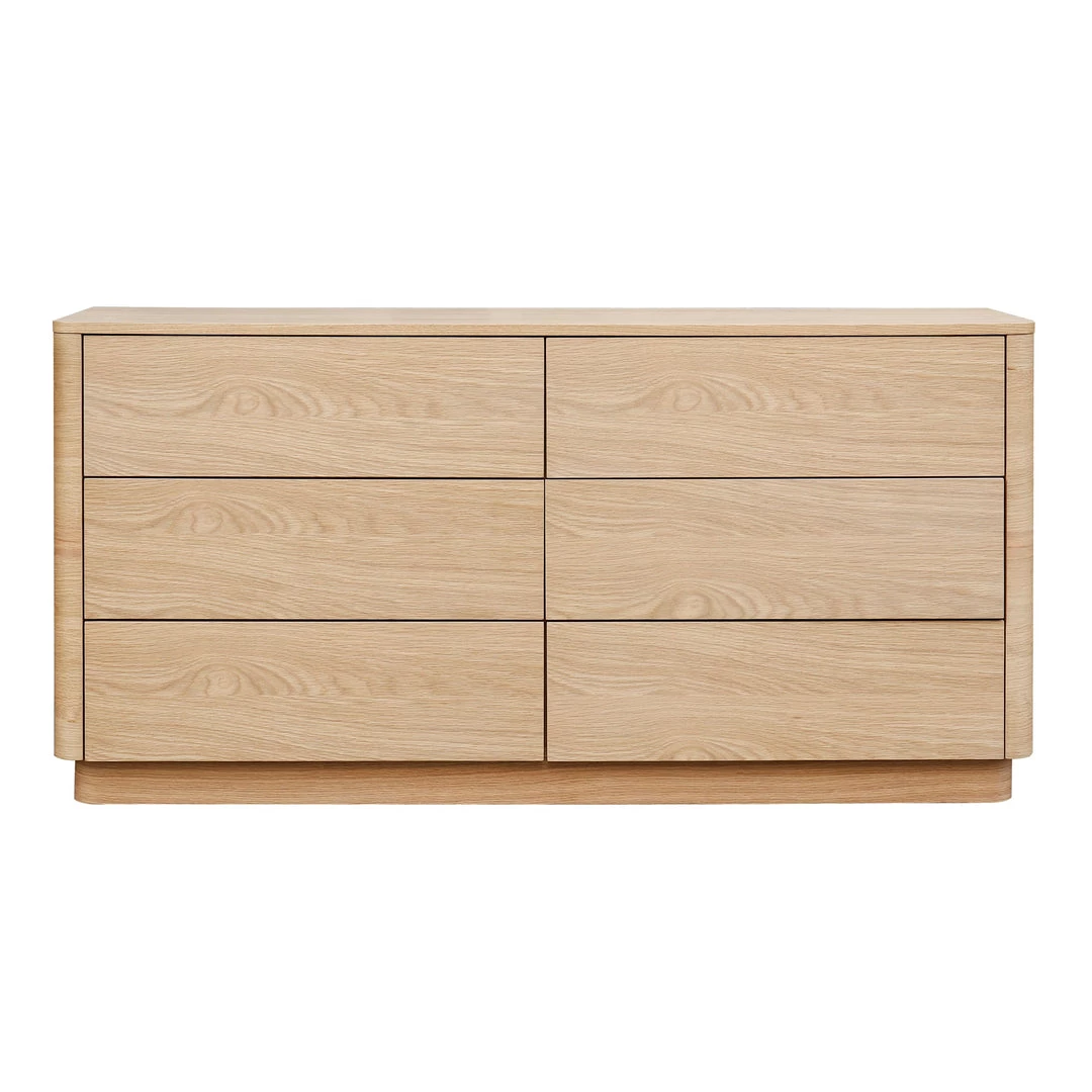 This Danish design-influenced dresser features a low build, soft shaping and six spacious drawers bringing both style and storage to the bedroom.