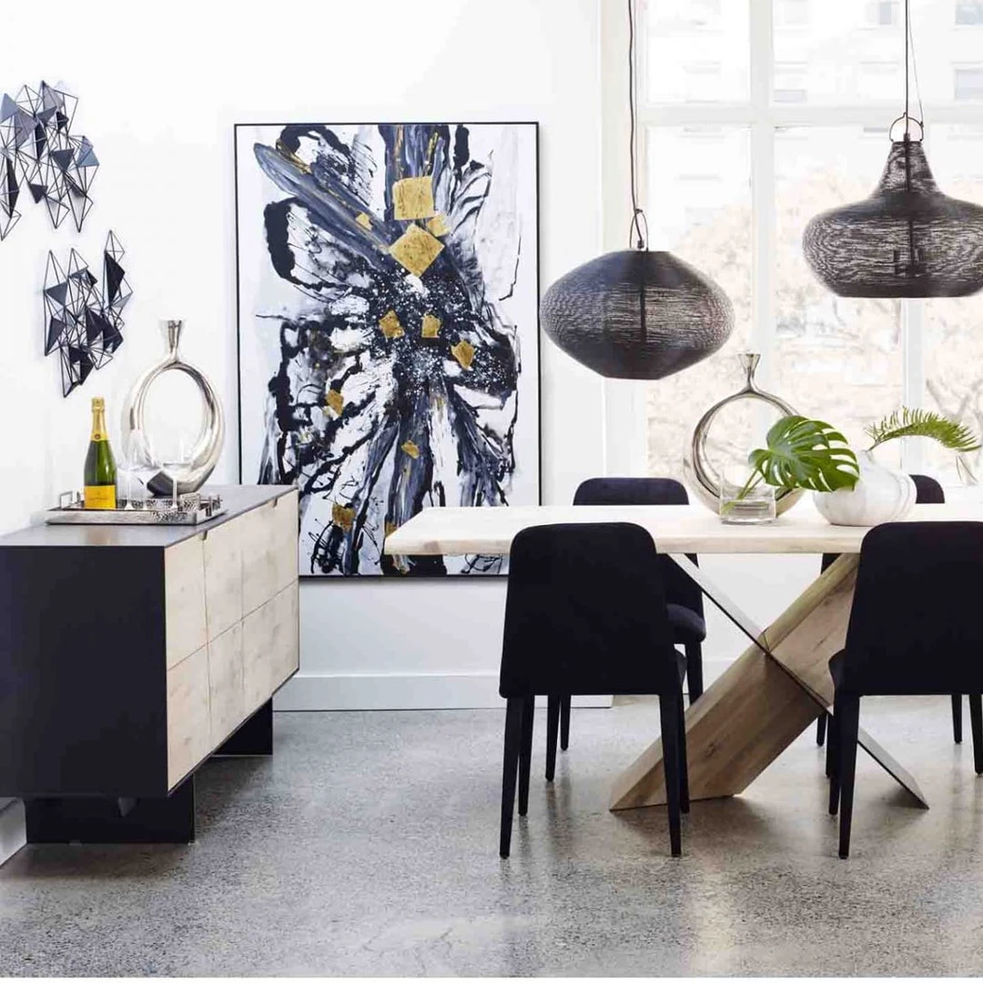 Moe likes to say, go with your Instinct. In this case it couldn’t be more true! The Instinct collection has a high-end designer look with angular doors made from solid oak and a contrasting black and natural color combination. Plenty of storage and cool, contemporary style.