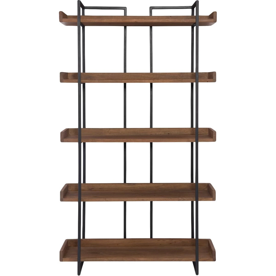 A sleek contemporary style constructed with an iron frame and solid acacia with a light brown stain.
