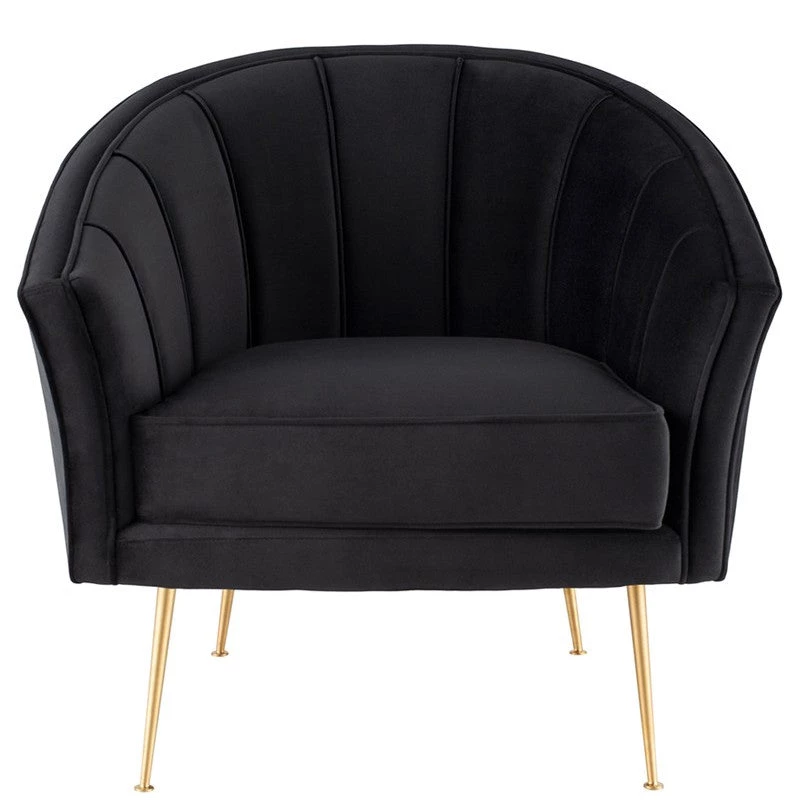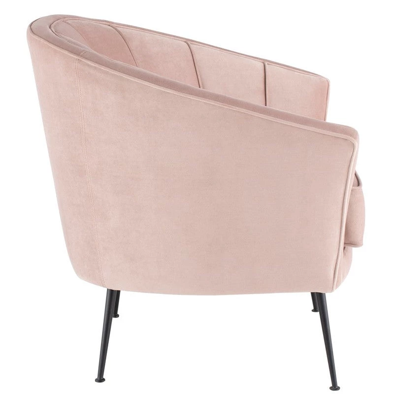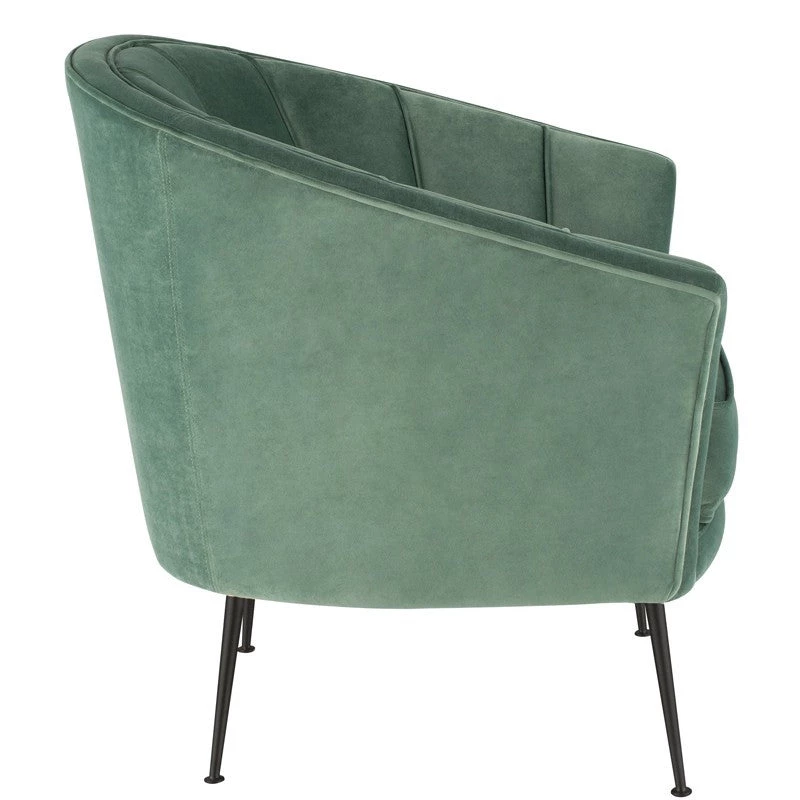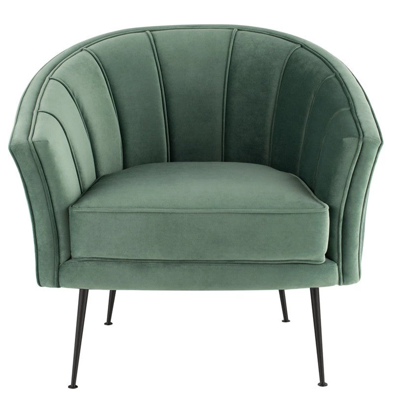 The artful curves of the Aria occasional chair create classic statement seating with subtle clamshell elegance. Slim rounded legs elevate the graceful frame.