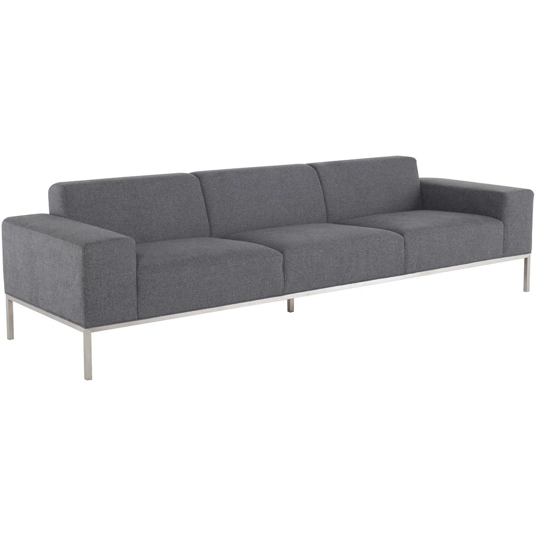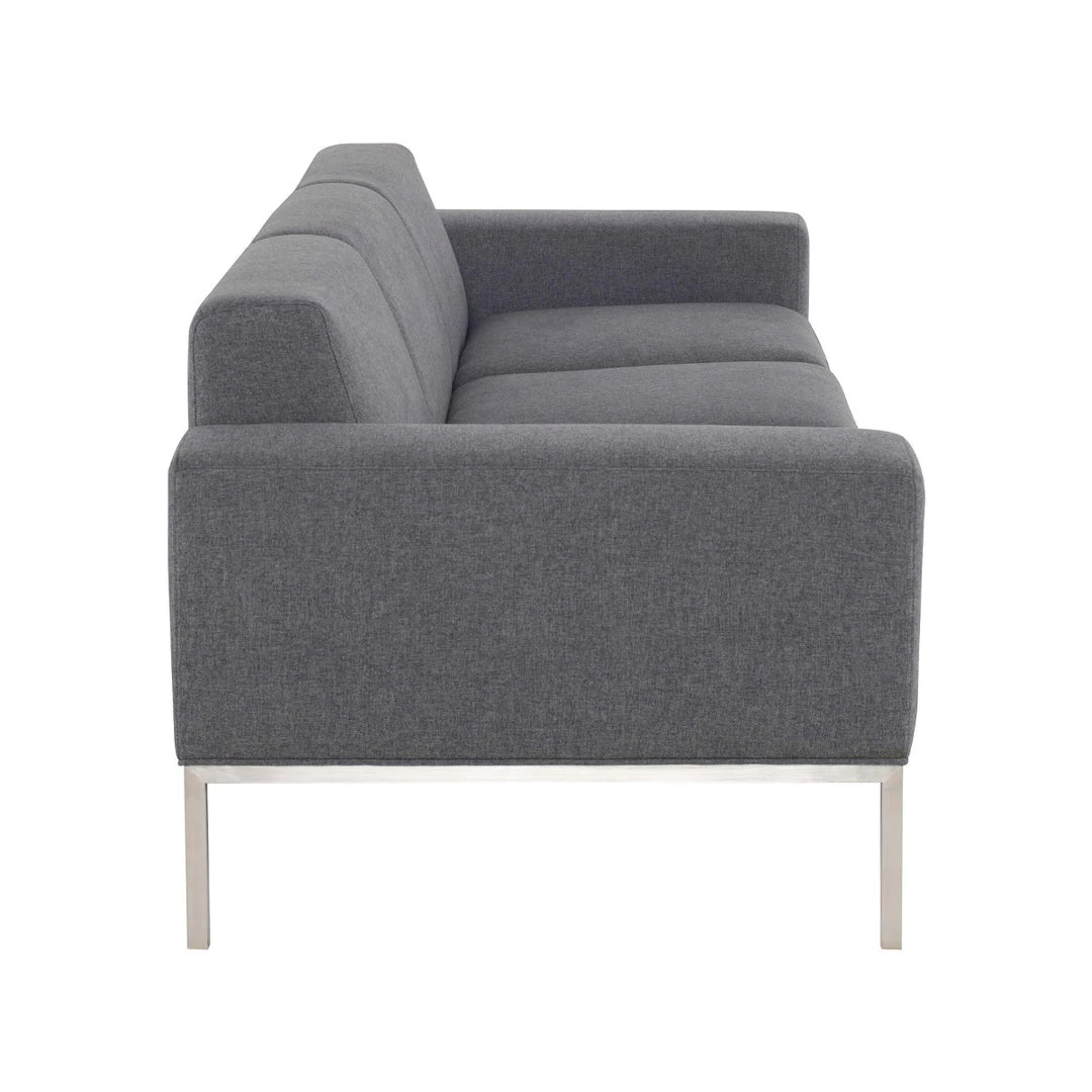 The Bryce three seater incorporates minimalism and elegance with deep seated generously padded comfort. The classic, finely tailored linear form, paired with a discreet brushed stainless steel frame and legs, creates a sophisticated, sleek silhouette.