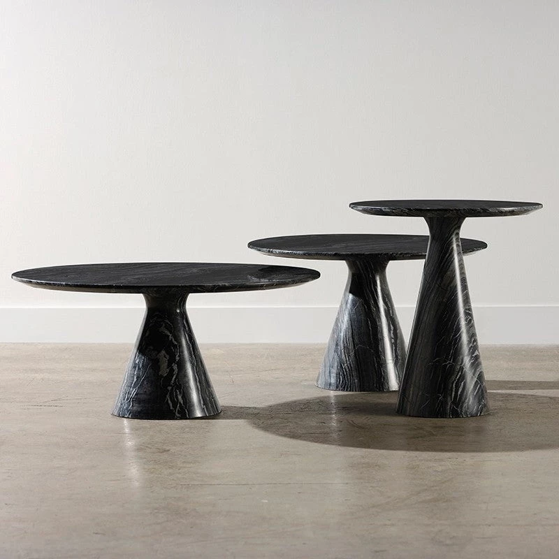 The Claudio coffee table is a beautifully round and gracefully compact piece. On its own or nested for added dimension and height, its charming character is accentuated by a composition and veining unique to every table. Each piece of marble is expertly crafted out of a unique piece of natural stone, creating beautiful variations and one-of-a-kind details.