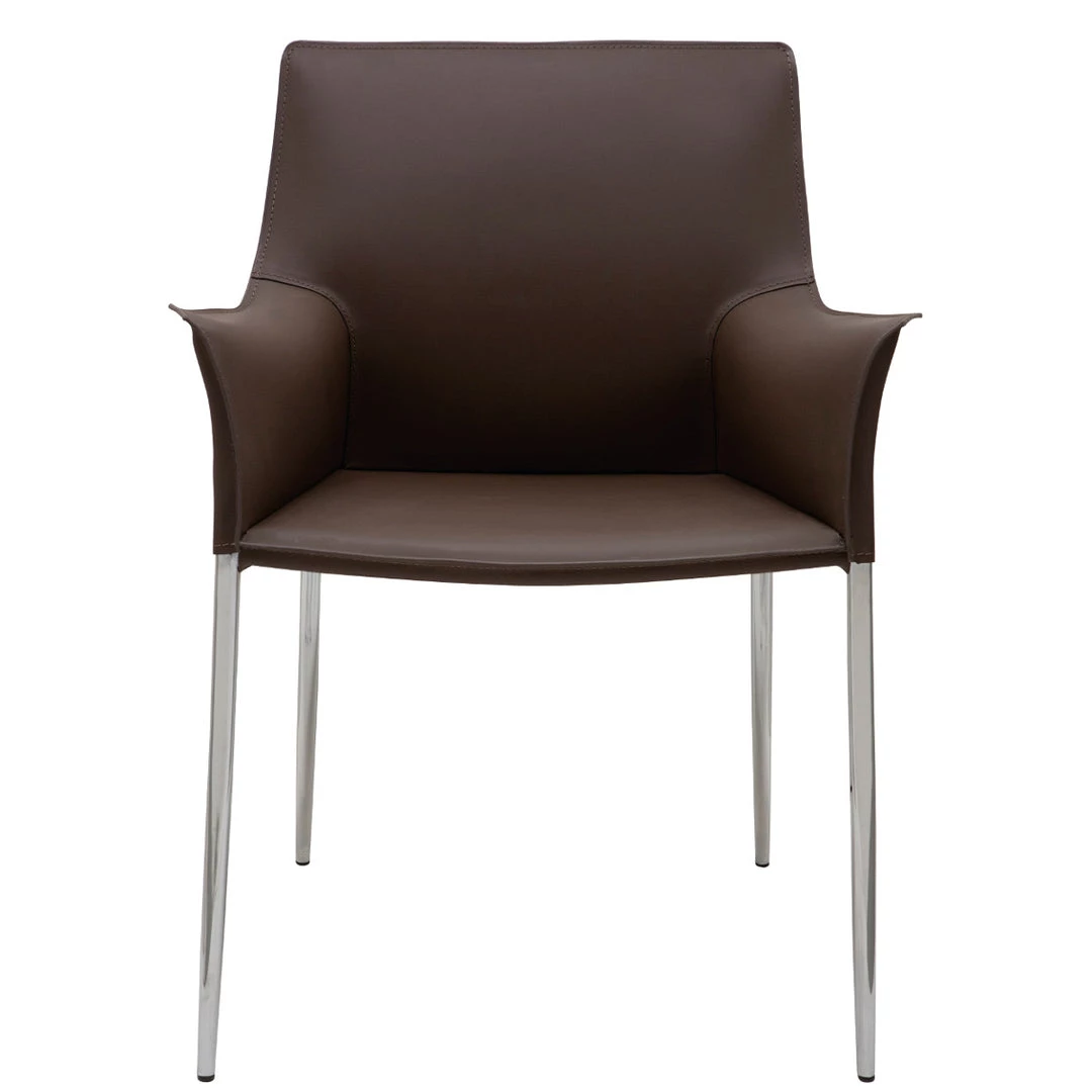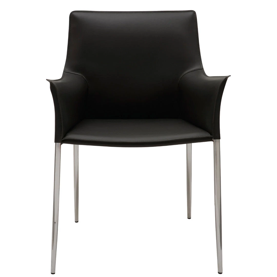 The Colter Arm Chair features commercial quality construction with a clean modern design. Crafted with a chromed, steel frame, Colter is upholstered in 100% genuine Italian leather with ultra clean tone-on-tone stitching. The unsurpassed quality makes this chair ideal for any installation including office, restaurants, and hotels.