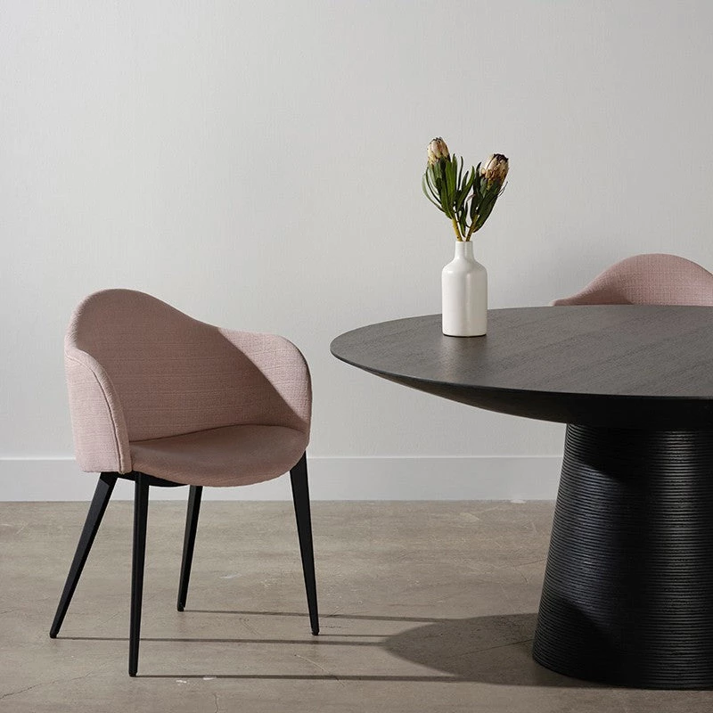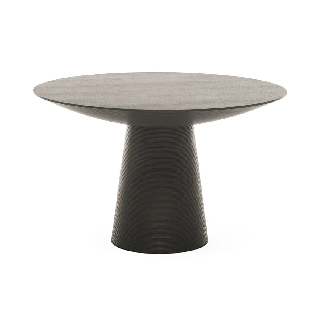 A bold statement in modern minimalism. Inspired by contemporary Japanese design, Dania’s distinctive ribbed plinth base projects an intriguing profile while the uniquely crafted rounded tabletop highlights adds sculptural appeal.