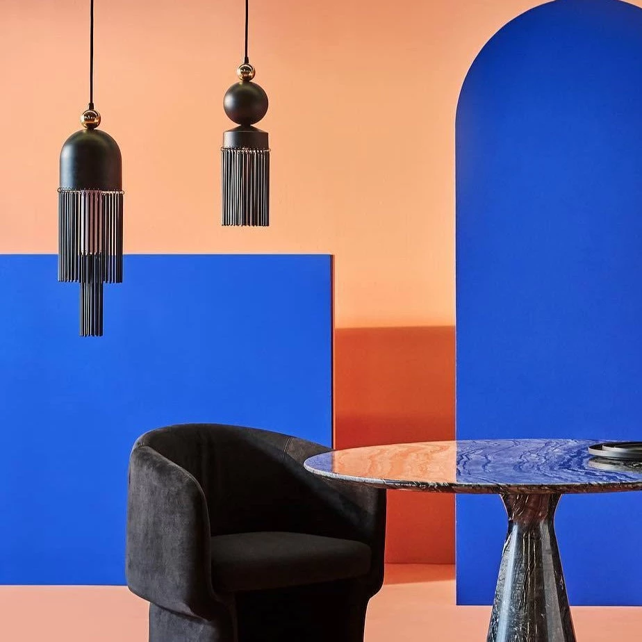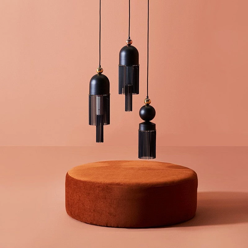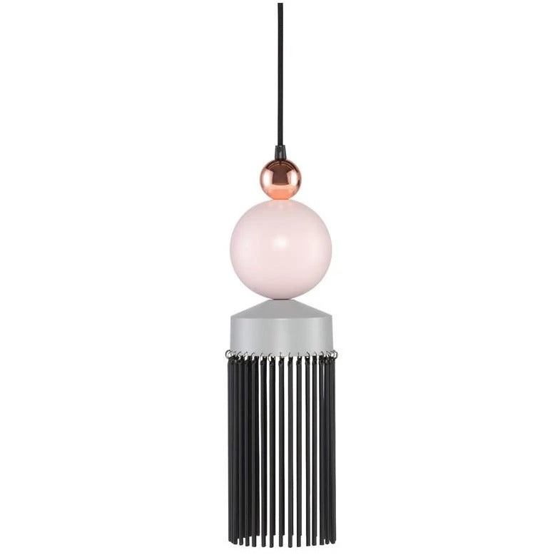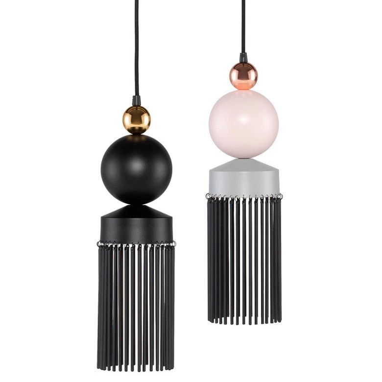 Artfully designed, the Fabiola pendant resembles an eye-catching piece of jewelry. A striking polished sphere rests on a larger matte finished ball, while delicate matte black glass tassels enclose the lightbulb. This poised design is perfect for wherever you are looking to make a statement.