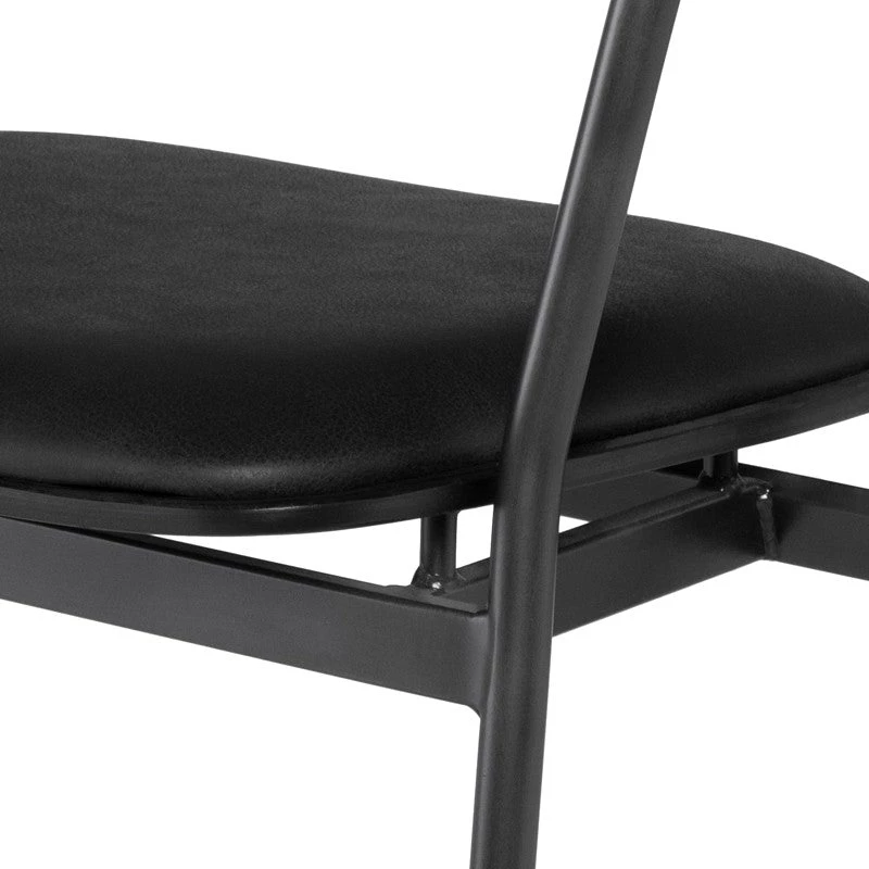 An elevated take on industrial seating. Slim, angular steel framing features a seared oak seat and curved back with top grain leather cushioning for effortlessly cool sculptural style.