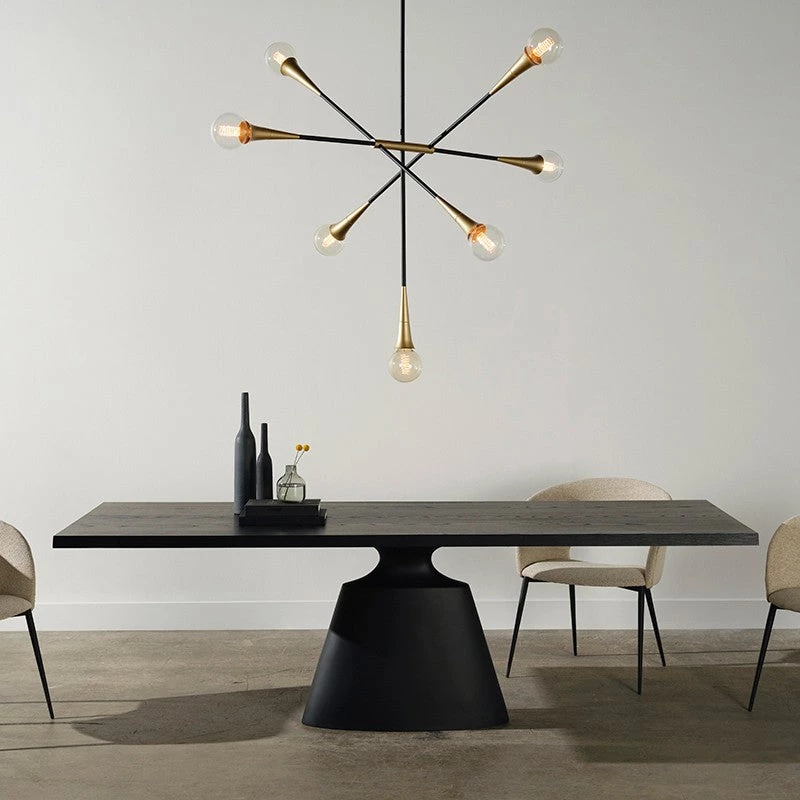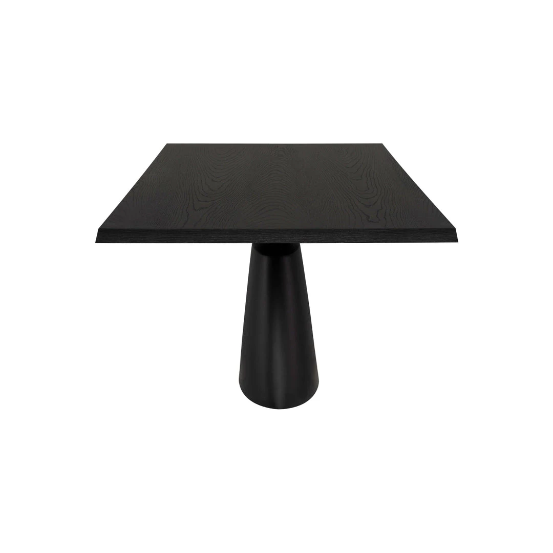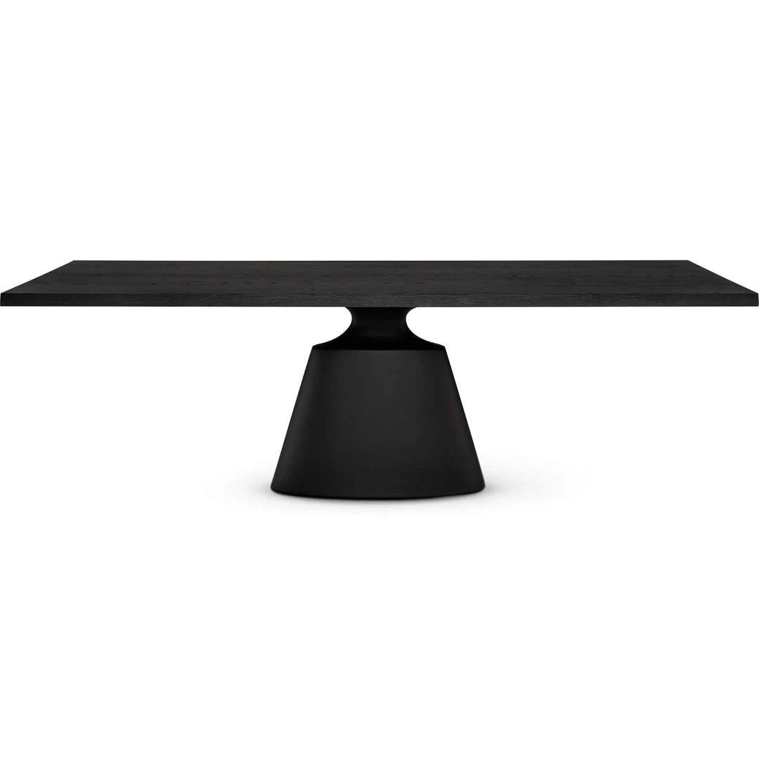 The Taji dining table makes a powerful statement. With a singular, architectural base its sleek silhouette is modern and uncluttered. The broad, floating top provides ample space for memorable dining.