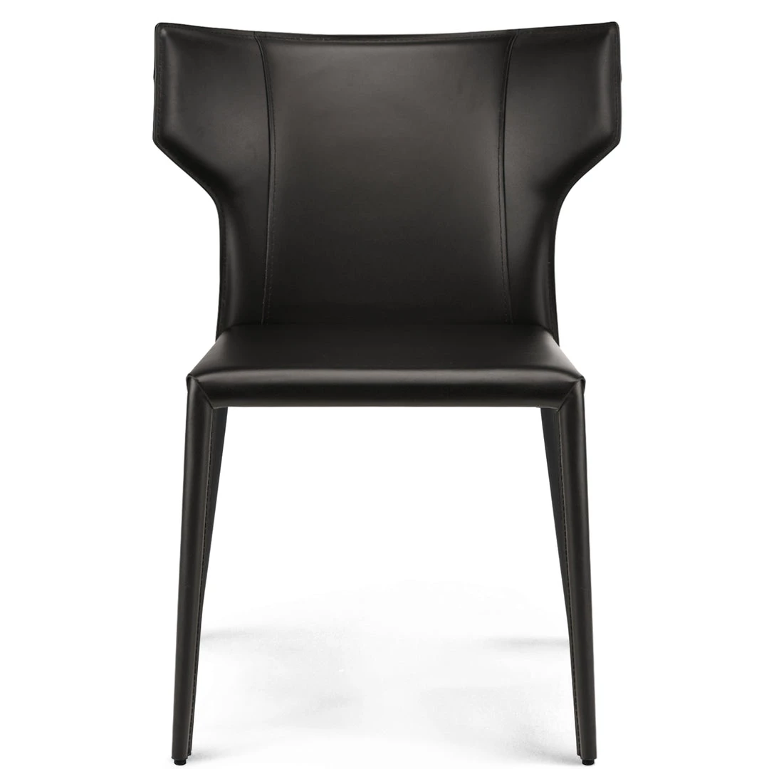 The Wayne Dining Chair features commercial quality construction with a clean modern design curved to perfection. Fully wrapped in 100% genuine Italian leather with ultra clean tone-on-tone stitching, the unsurpassed quality makes this dining chair ideal for any installation including office, restaurants, and hotels.