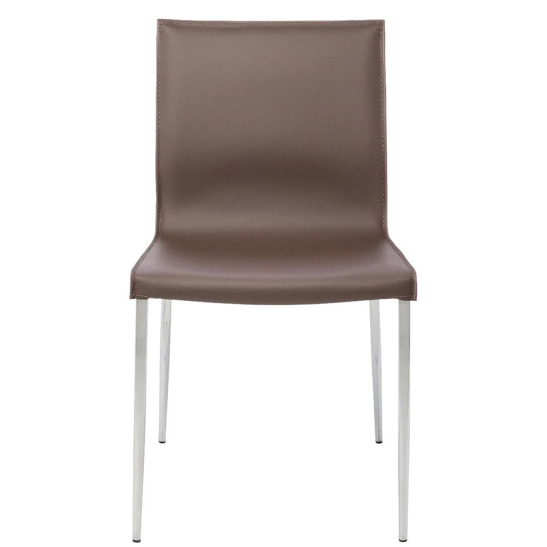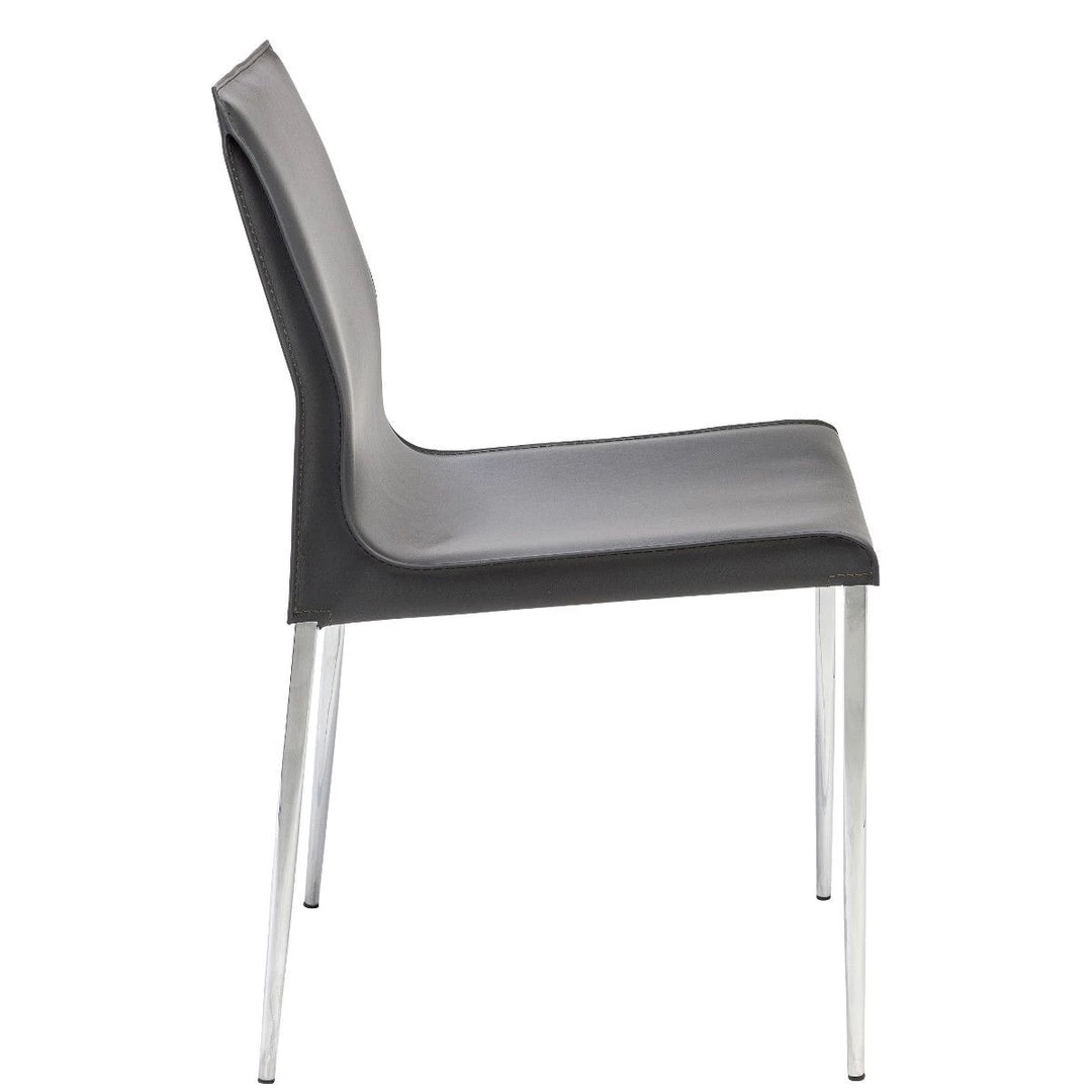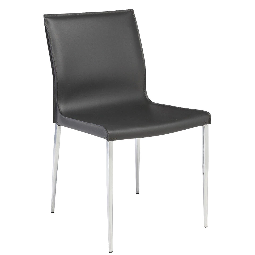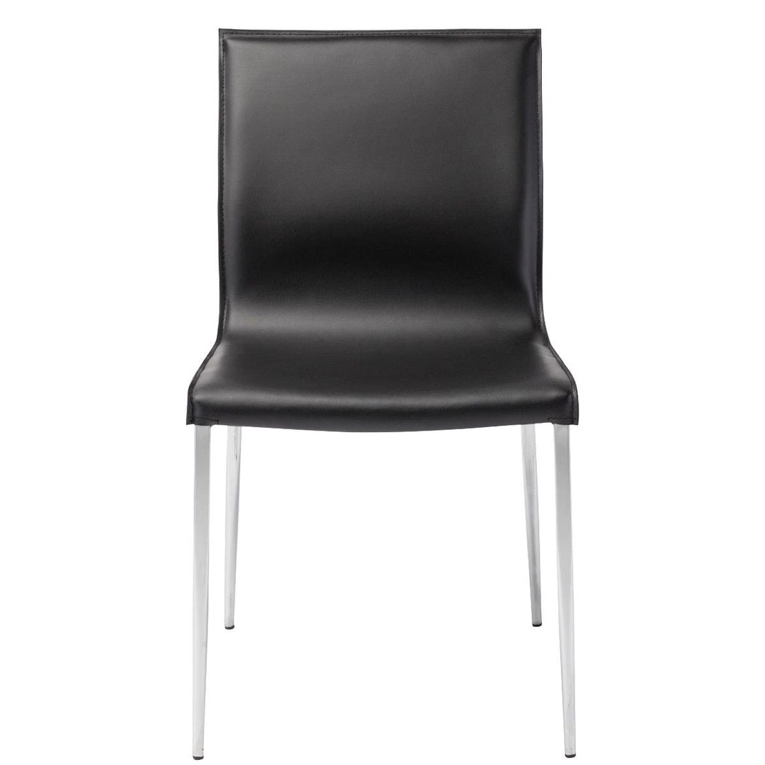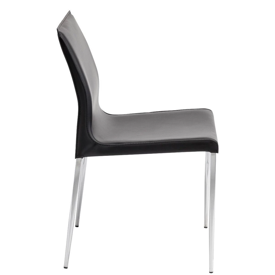 The Colter Side Chair features commercial quality construction with a clean modern design curved to perfection. Crafted with a chromed, steel frame, Colter is upholstered in 100% genuine Italian leather with ultra-clean tone-on-tone stitching. The unsurpassed quality makes this chair ideal for any installation including offices, restaurants, and hotels.