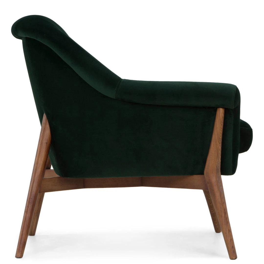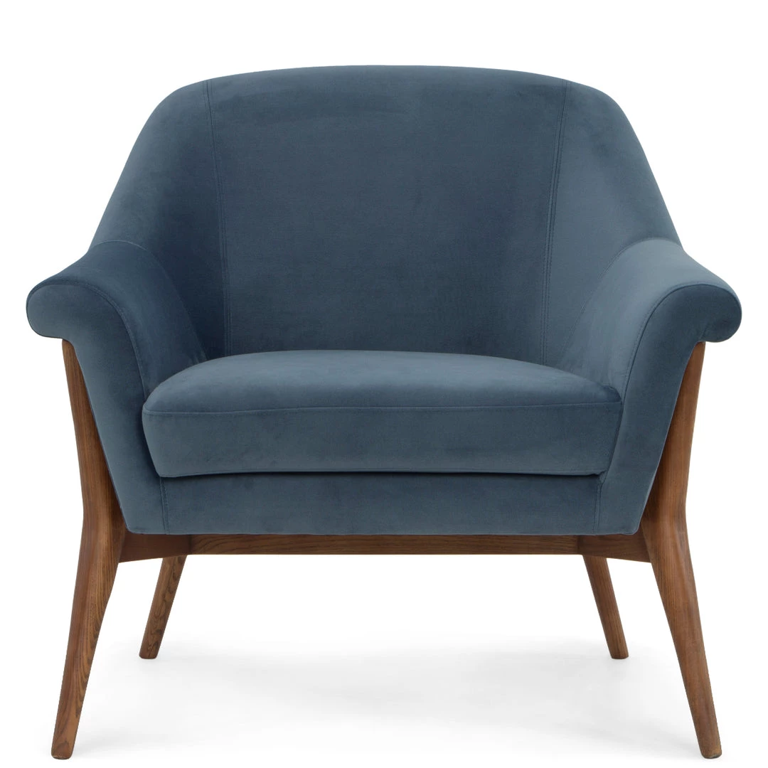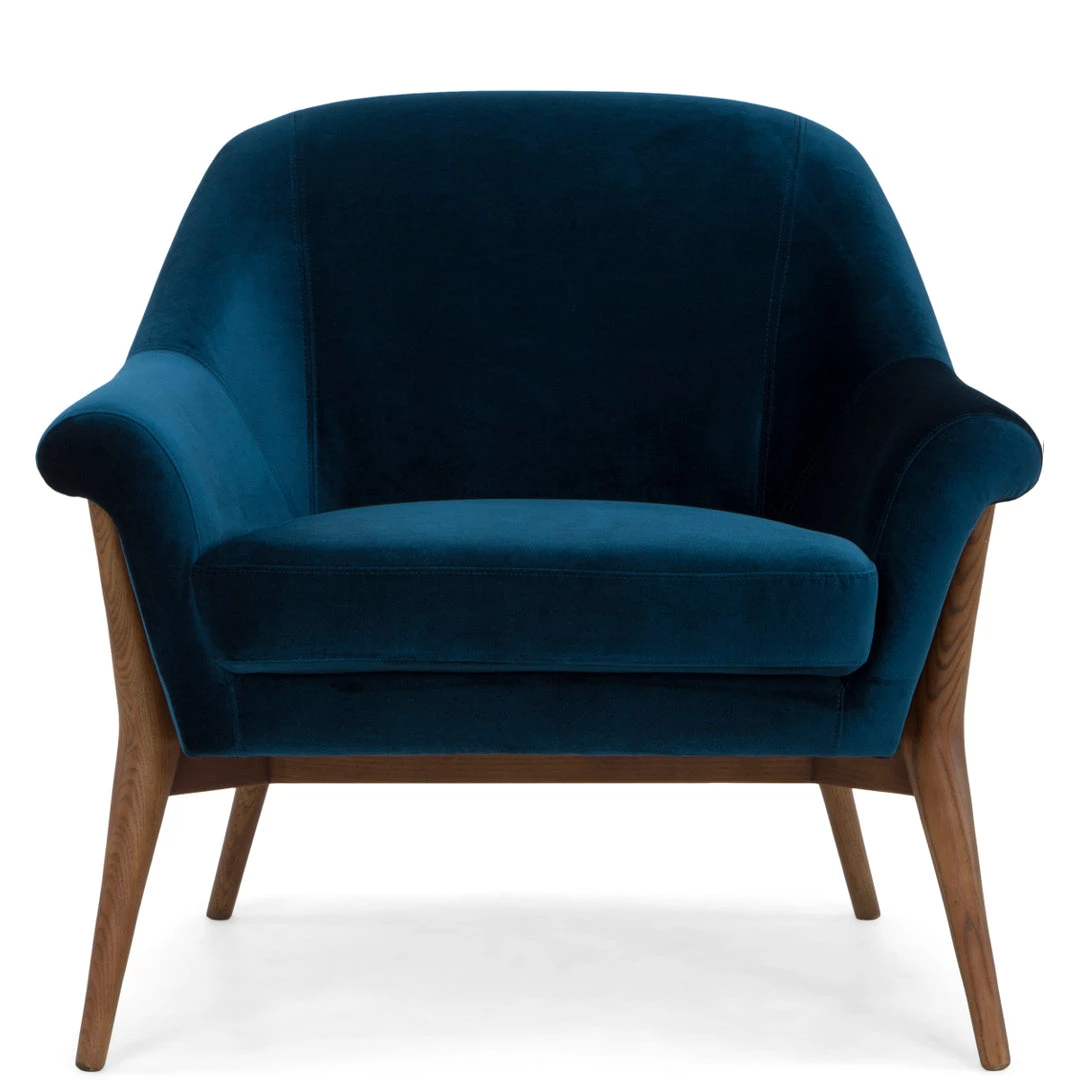 With its wide stance, low profile, and gracefully-curled armrests, the Charlize Chair evokes the lines of a classic club chair perfect for lounging with your favorite book. Poised and stately, this chair features solid ash-stained walnut legs and a satisfyingly deep velveteen upholstered seat.