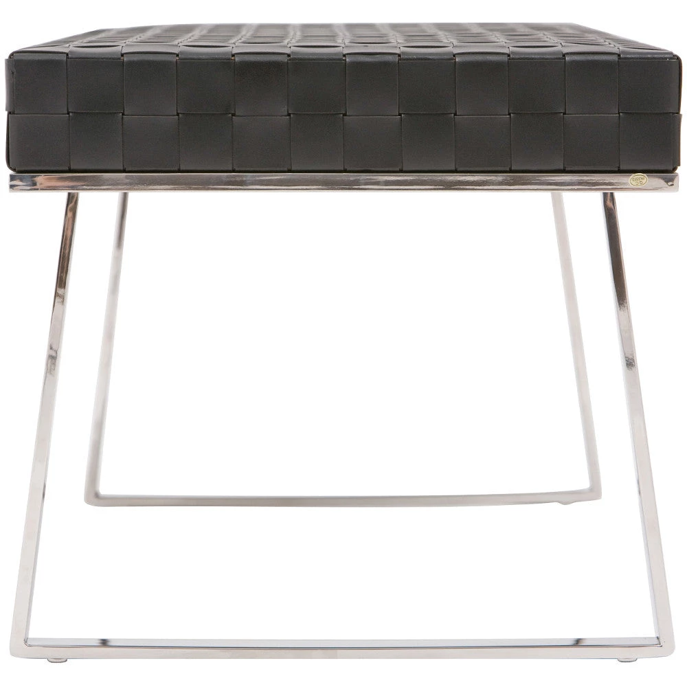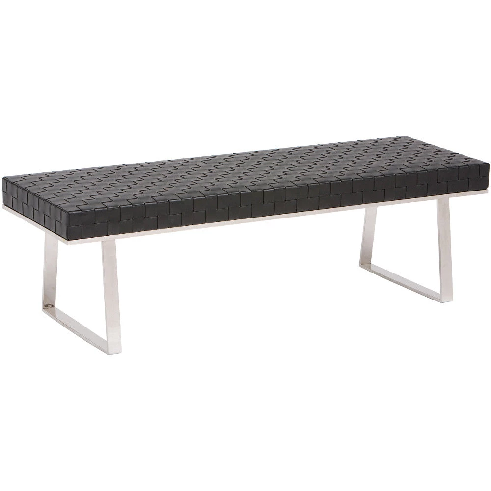 The Karlee bench is a refined union of top grade Italian leather and stainless steel. The design is simple and yet sophisticated, combining recessed, paired down high polish stainless steel legs with fitted woven leather . Comfortable, refined, chic.