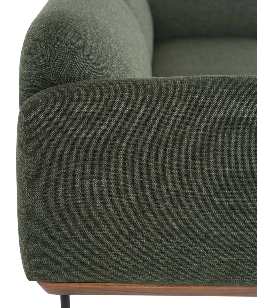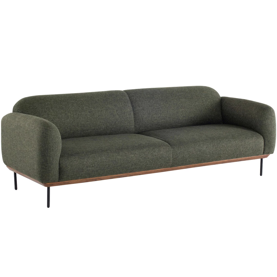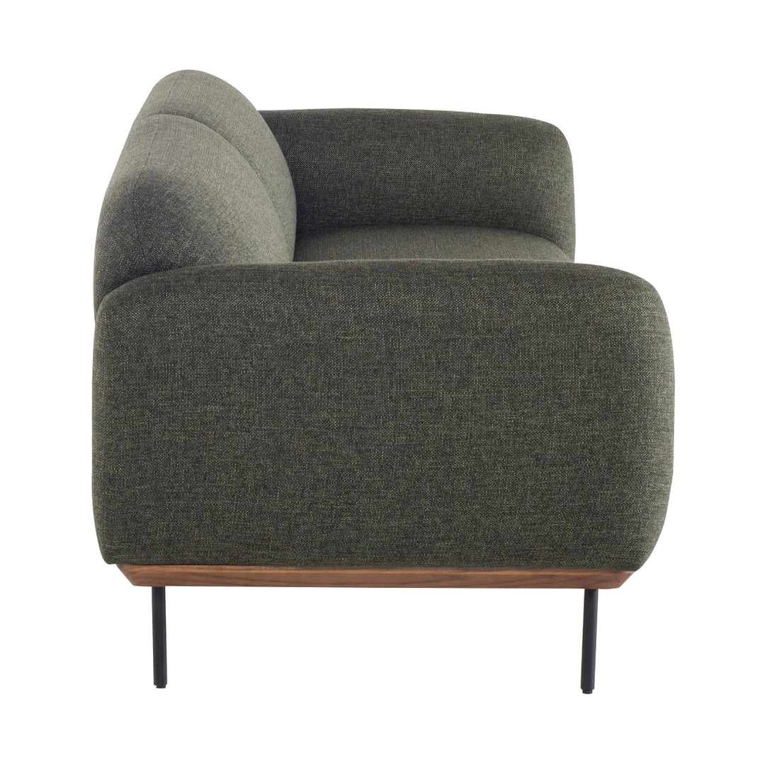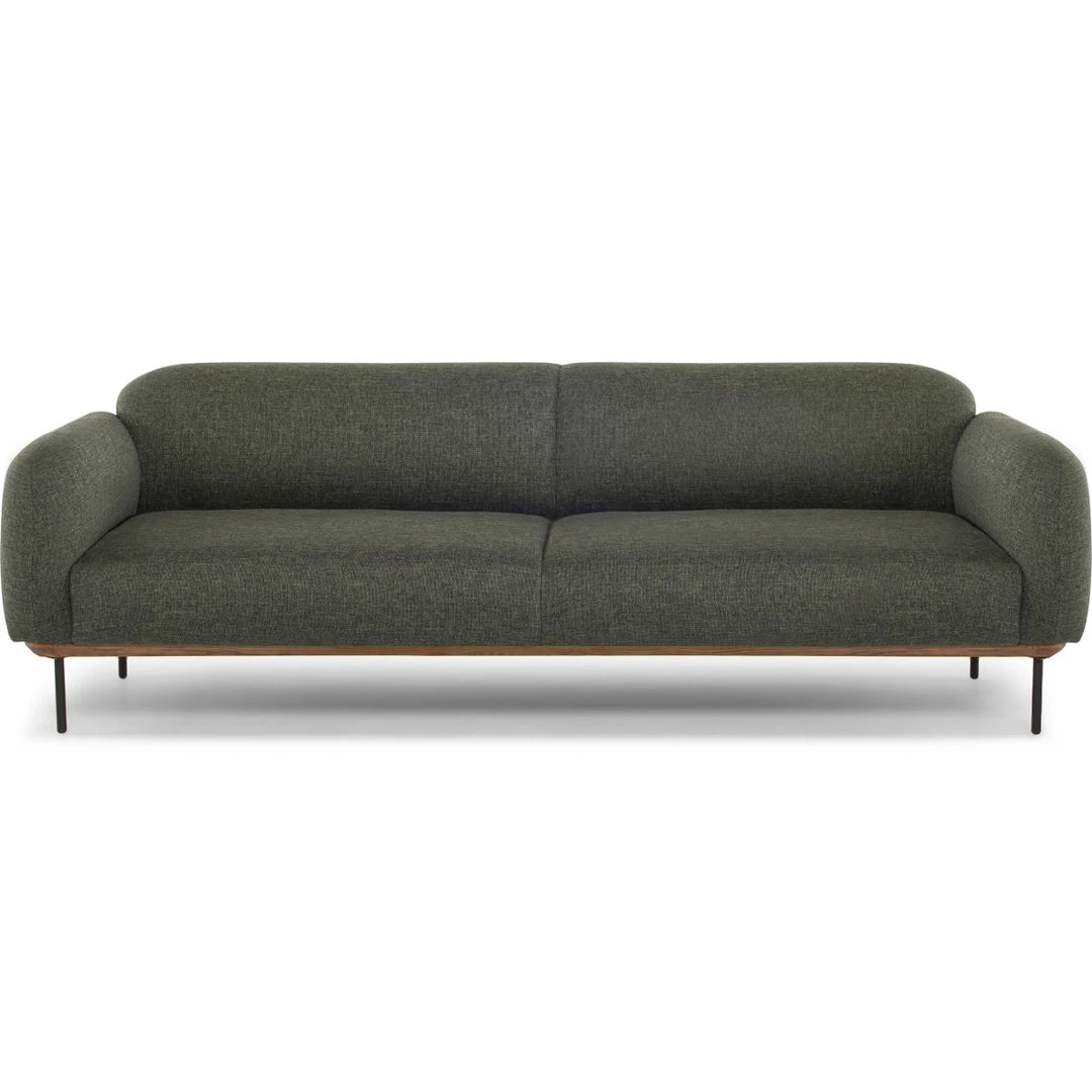 The gracefully composed Rooney Sofa exemplifies sculptured minimalism with its rounded upholstery and streamlined frame.